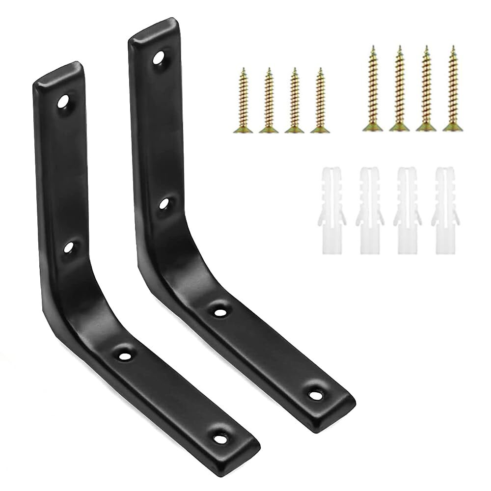 棚受け金具 L字型 鋼ブラケット 棚受けブラケット 耐荷重50kgステンレス製 キッチン 部屋 DIY アクセサリー ネジ付き 100mm×100mm×20mm 2本セットブラック