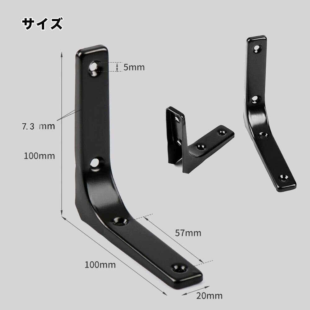 1.【サイズ】100mm×100mm×20mm L字型棚受けブラケット*2ブラック。