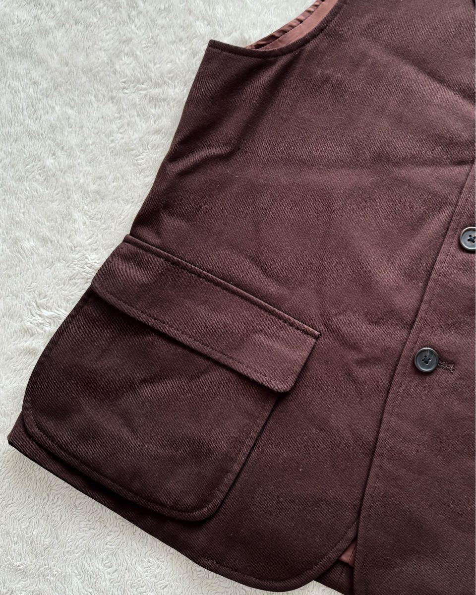 ・ツイル系のウール生地を使用し立体的な箱ポケットや斜めのチェンジポケットデザインがお洒落なベストになります♪