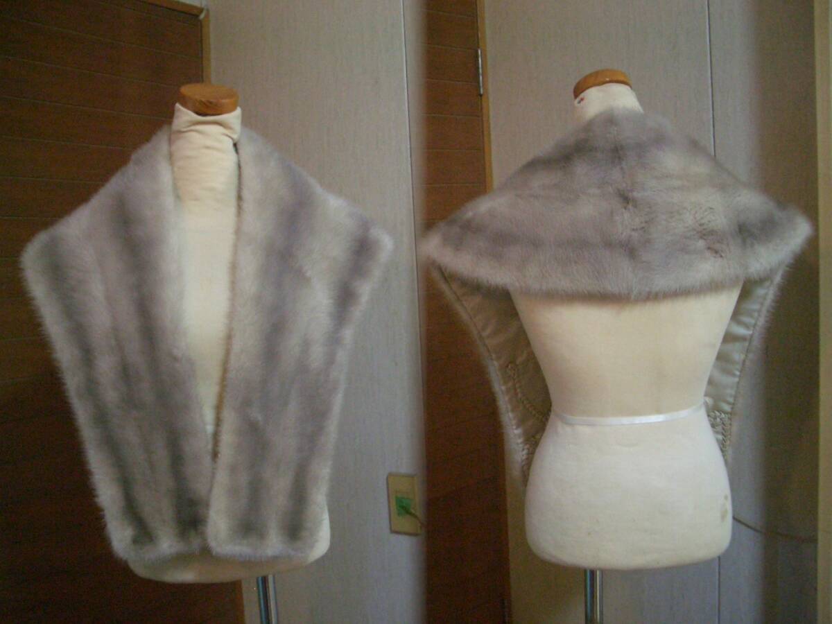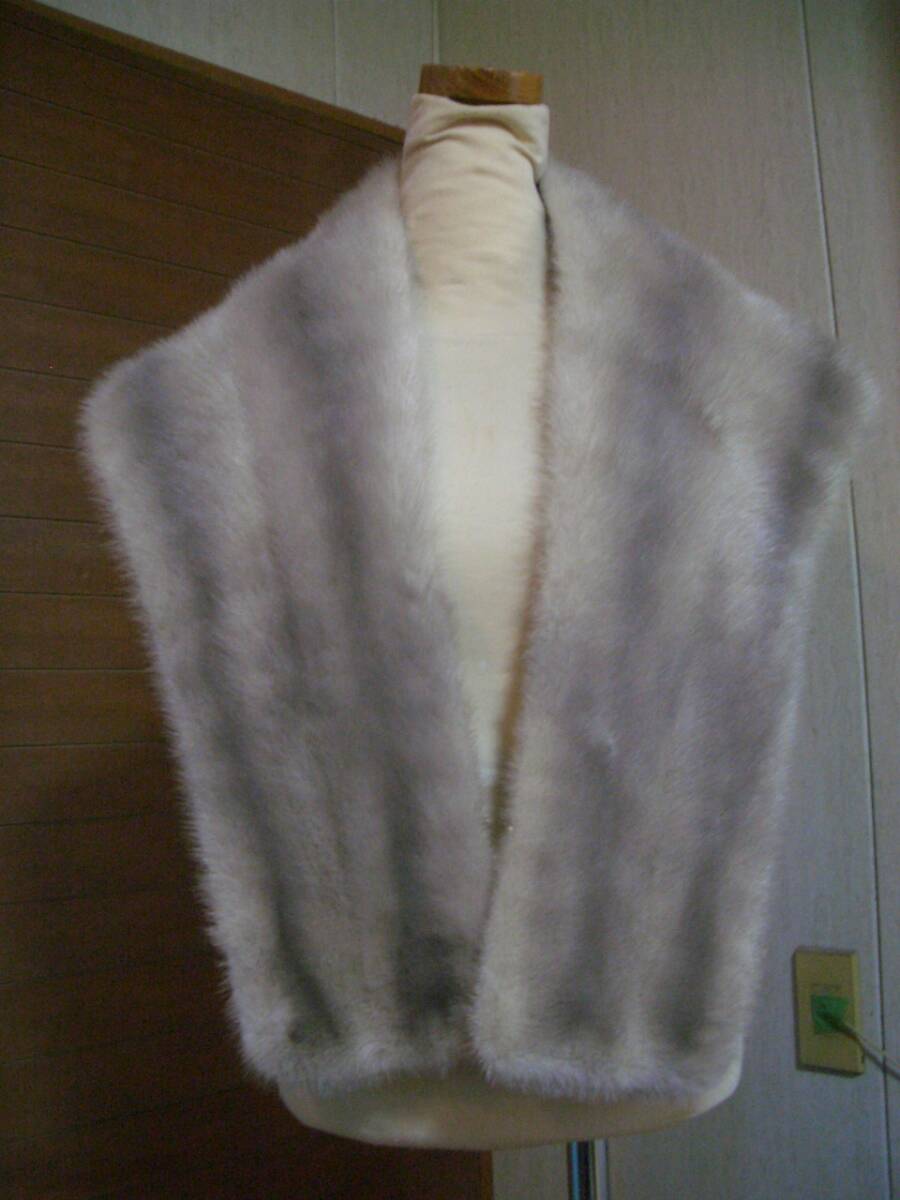 CANADA MINKサファイアミンク*薄オフグレー高級大判ショール美品NO20*長さ138センチ