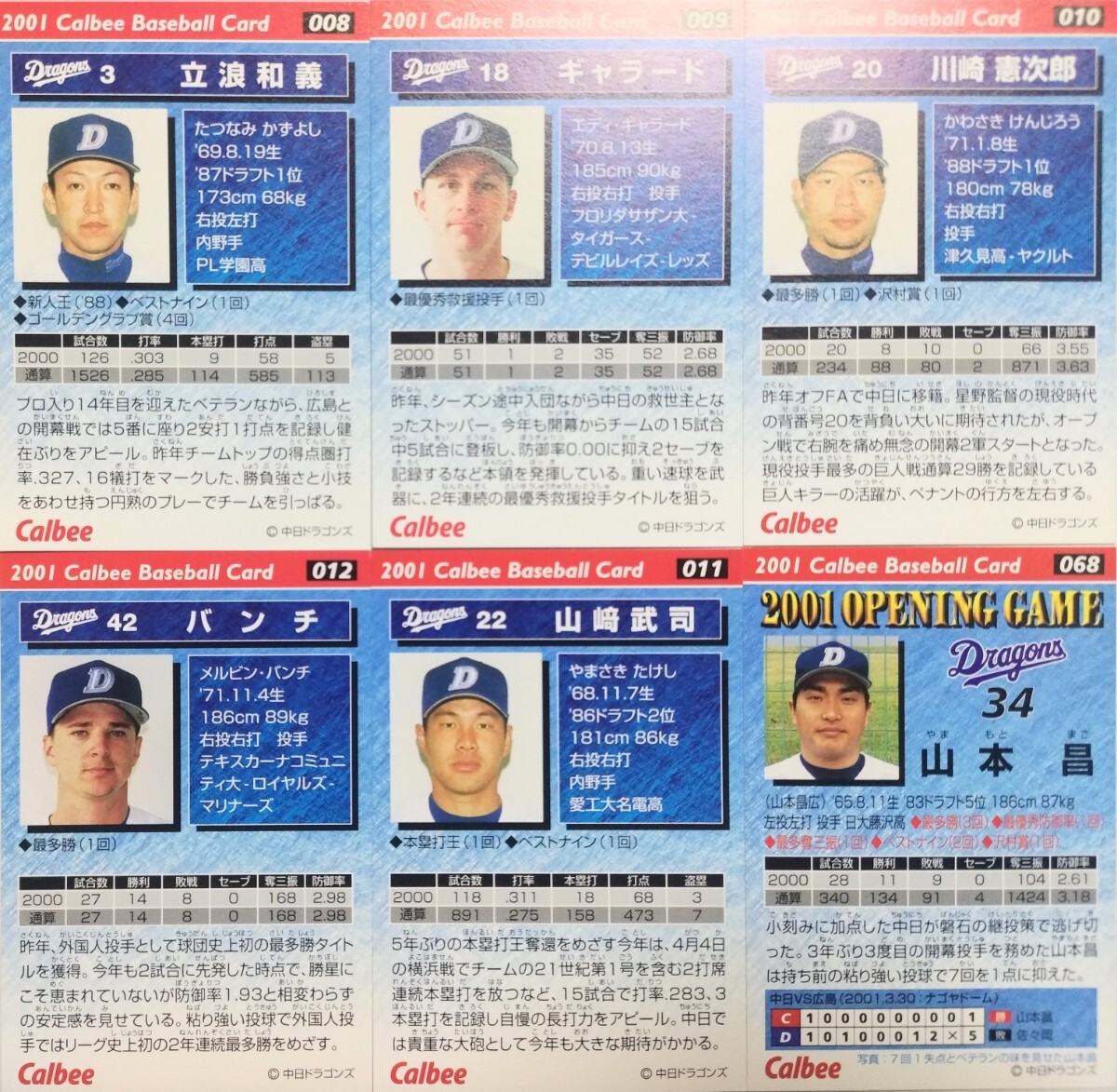 R-008立浪、009ギャラード、010川崎、011山﨑、012バンチ、068山本昌