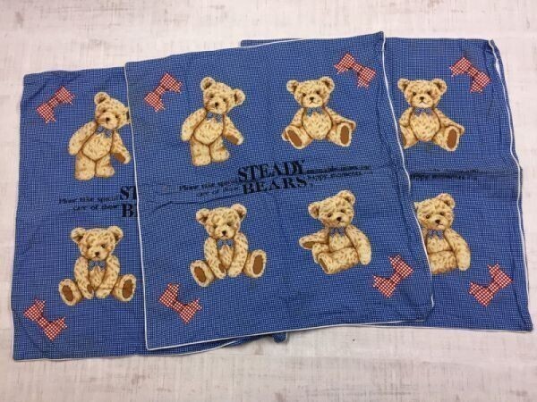 オールド レトロ クラシック トラッド STEADY BEARS テディーベアー キャラクター ファンシー クッションカバー 3点セット 青系 です。