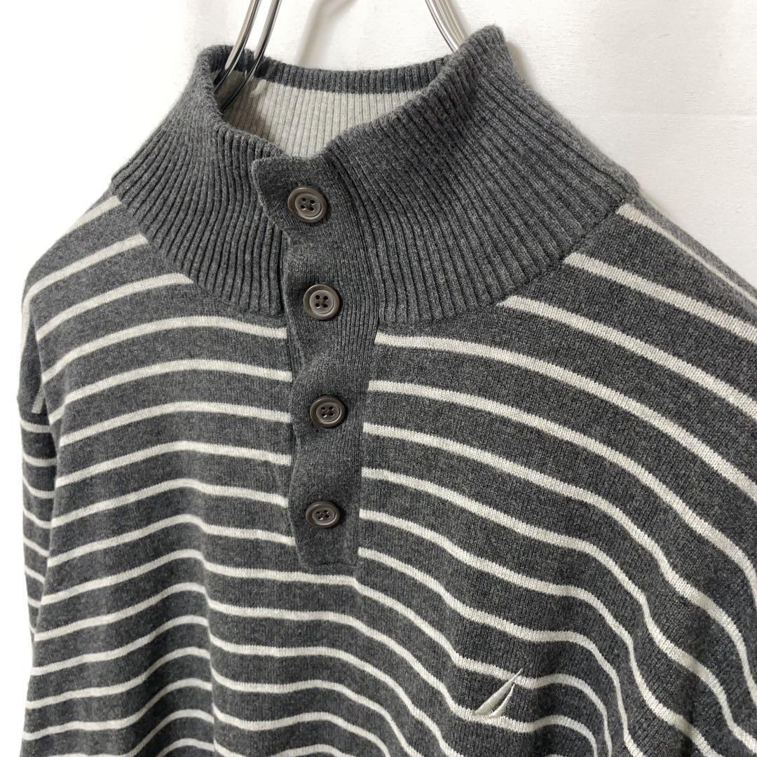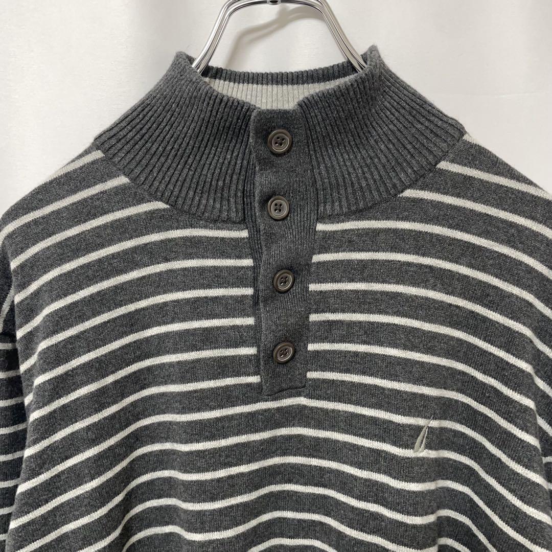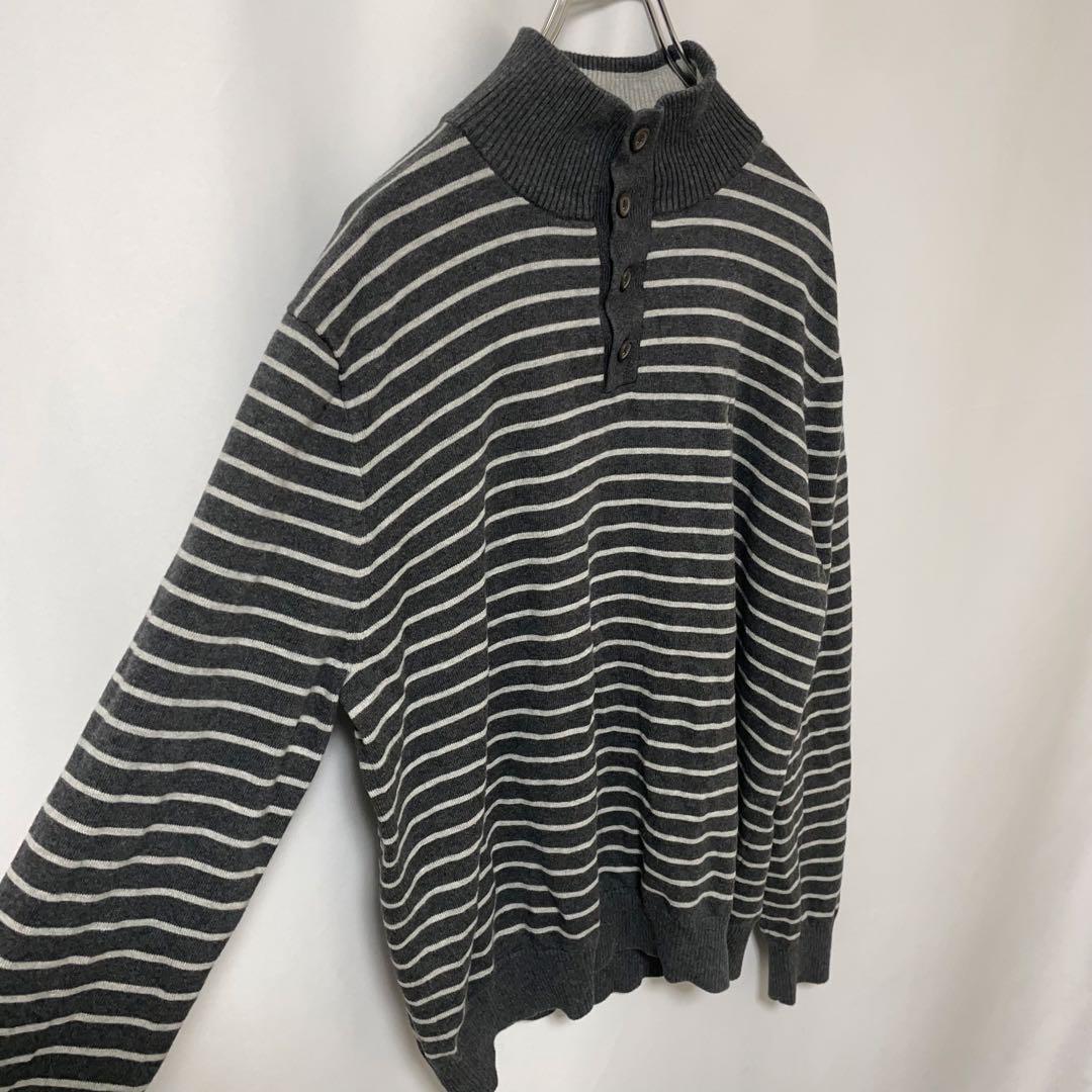 □タイプ:コットン ニット セーター ヘンリーネック 刺繍 ボーダー