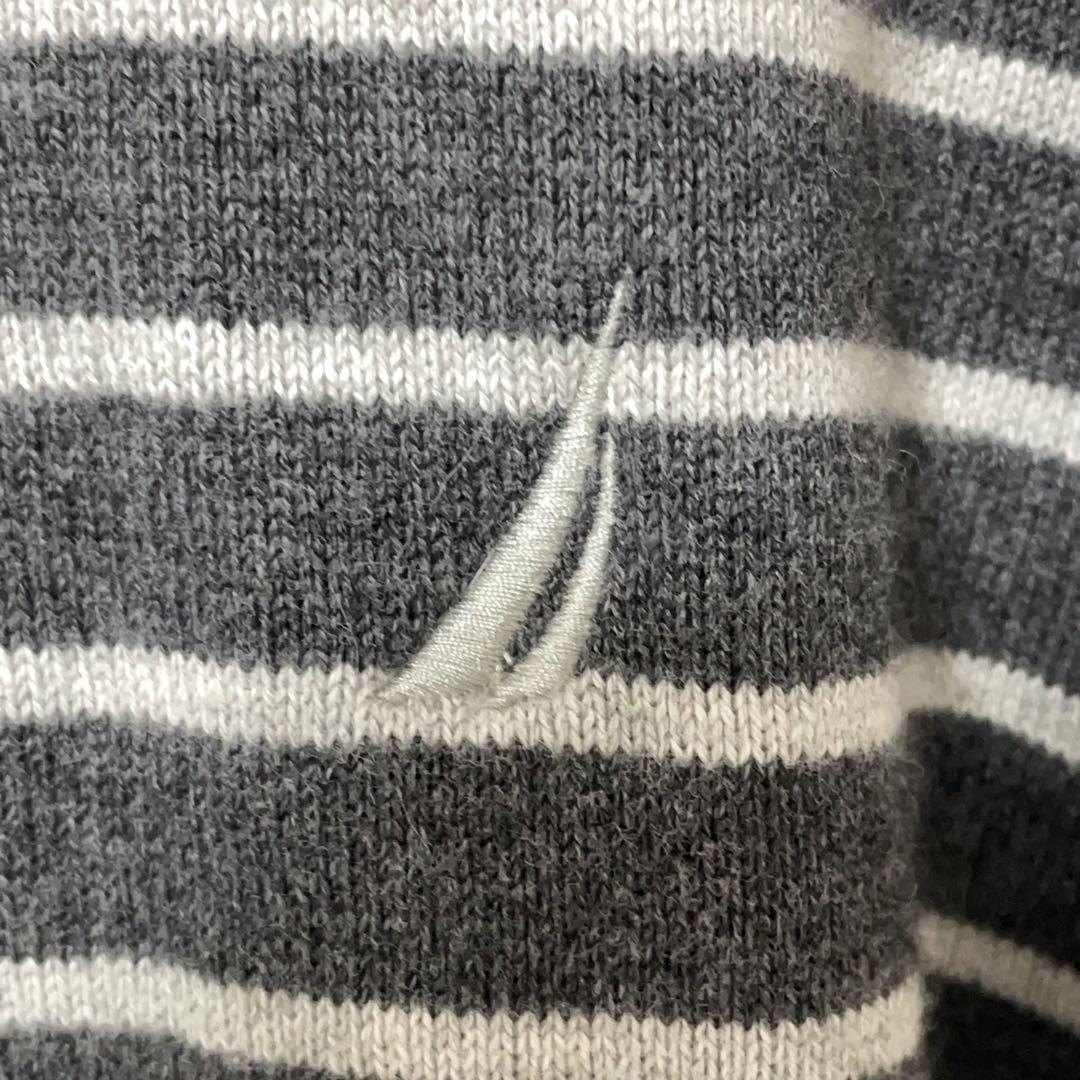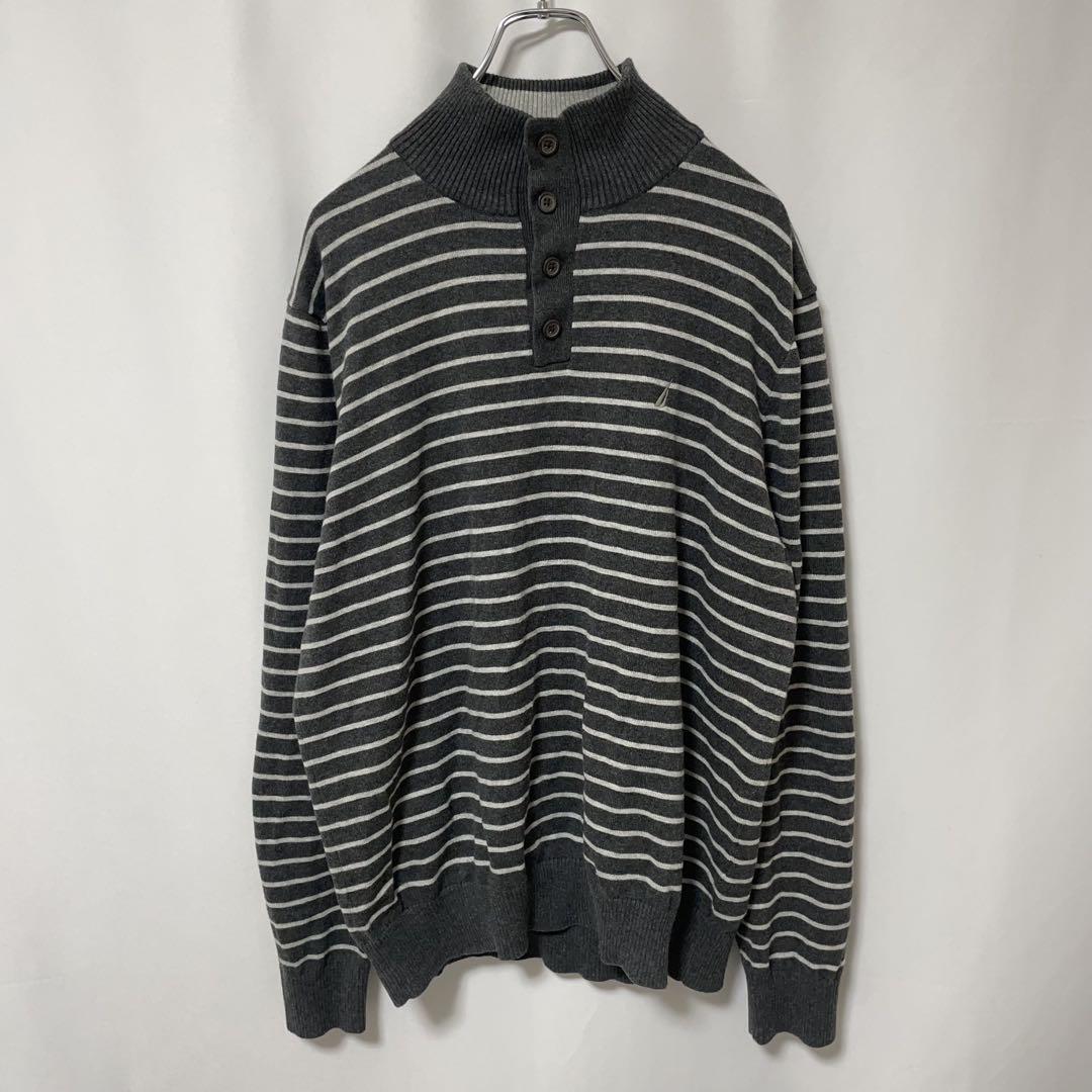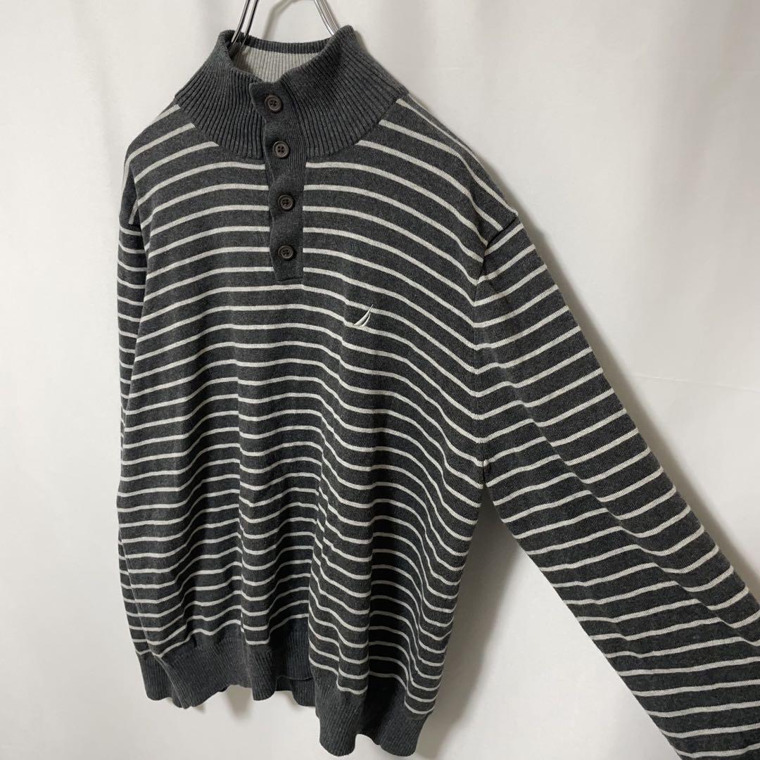 □タイプ:コットン ニット セーター ヘンリーネック 刺繍 ボーダー