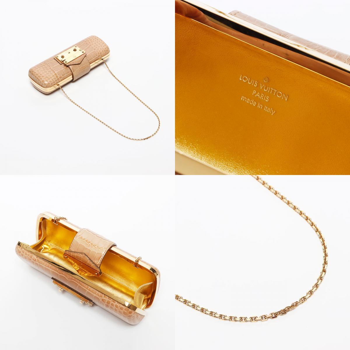 極美品 LOUIS VUITTON チェーンショルダー ゴールド金具 クロコダイル ショルダーバッグ ベージュ