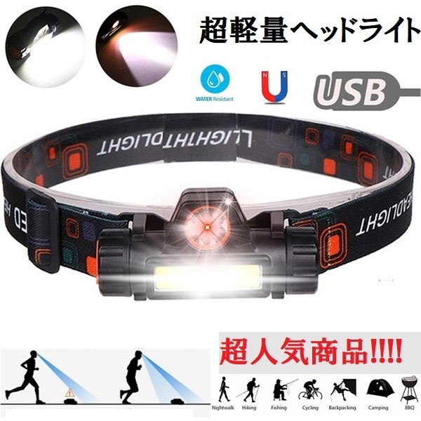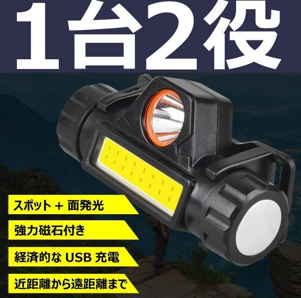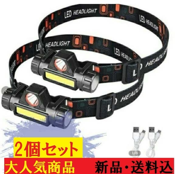 【お得な2個セット】新品無段階調光 ヘッドランプ LEDヘッドライト 充電式 登山 釣り アウトドア キャンプ 夜釣り