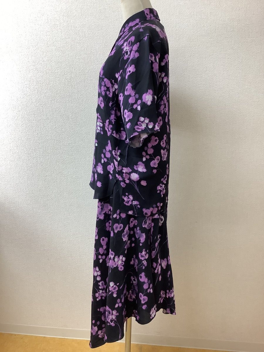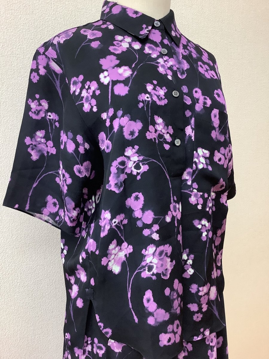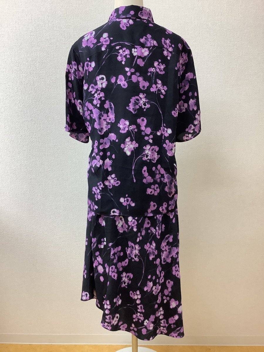 セオリー (Theory project) 黒×ピンクぼかし花柄 ブラウスとアシンメトリースカート 【表示サイズ】 ブラウスS スカート2 【平置き実寸】 脇下身幅 52cmほど トップス着丈 64cmほど 肩幅 43cmほど そで丈 27cmほど ボトムスウエスト幅 36cmほど 【季節感】夏向け 【状態その他】 目立った傷や汚れなし スカートウエスト幅36、スカート丈65-82cm 当店管理番号:10^139834 |