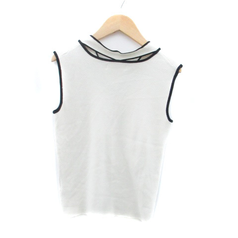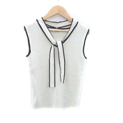 アンデミュウ Andemiu ニット カットソー ボウタイ ノースリーブ F オフホワイト 黒 ブラック /HO55 レディース