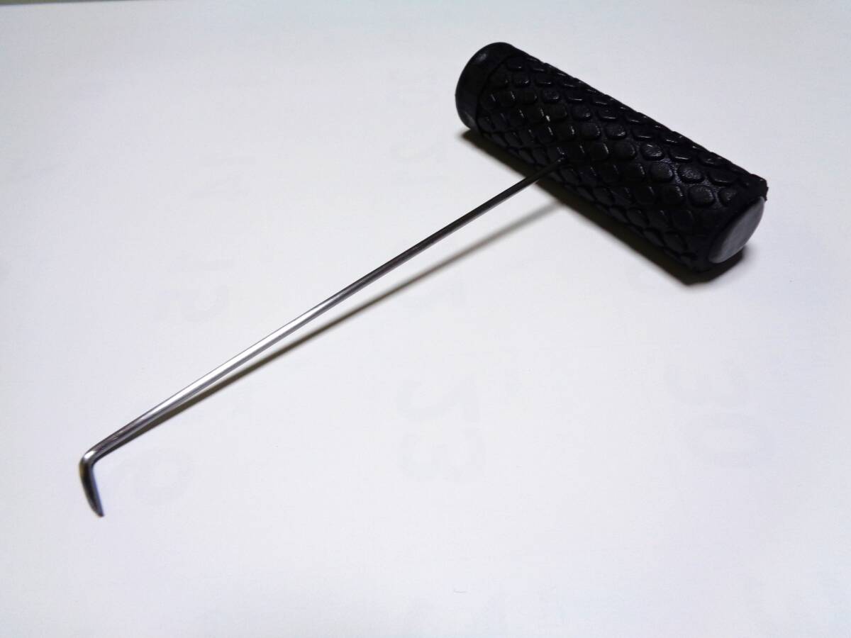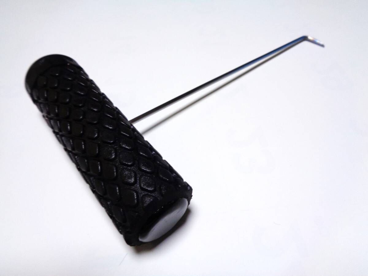 使用用途■(コアを折り、コアガラをスピーディに引き出せる道具です又コアにかみ込んで残った鉄筋を取るのにも使用しています。グリップは手に沿って握りやすく、鉄芯も大変堅牢で曲りにも強い鋼材です。フエンス用の下向き削孔コアガラの取り出しも大変スピーディに行えます。)
