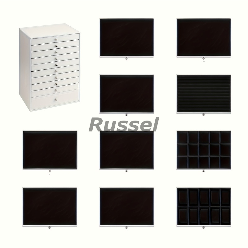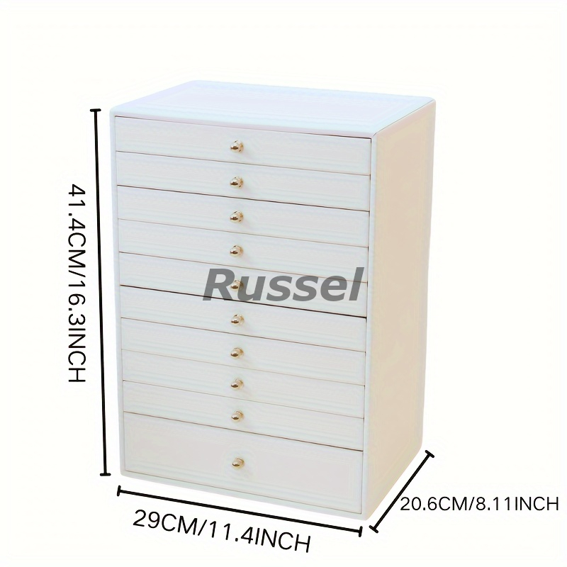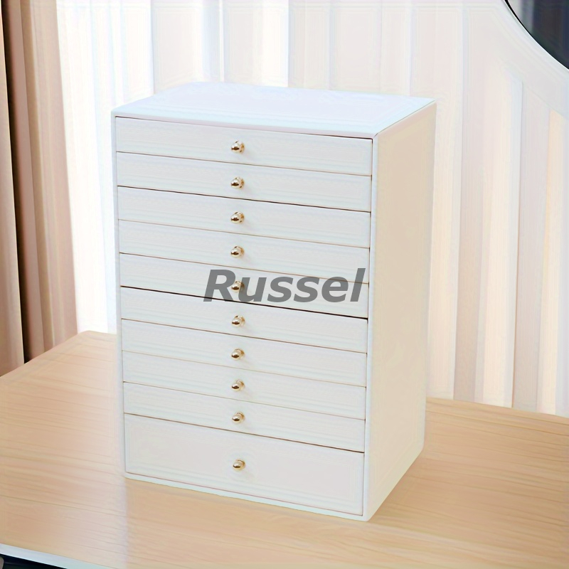 取っ手の付いた10段の引き出しで、