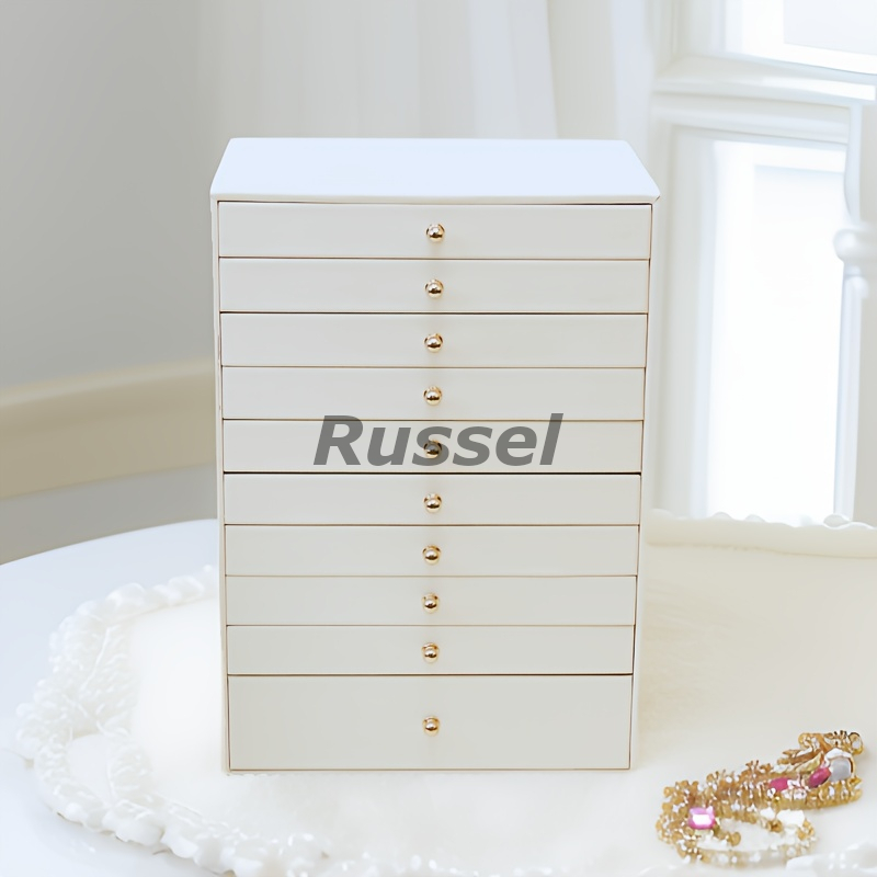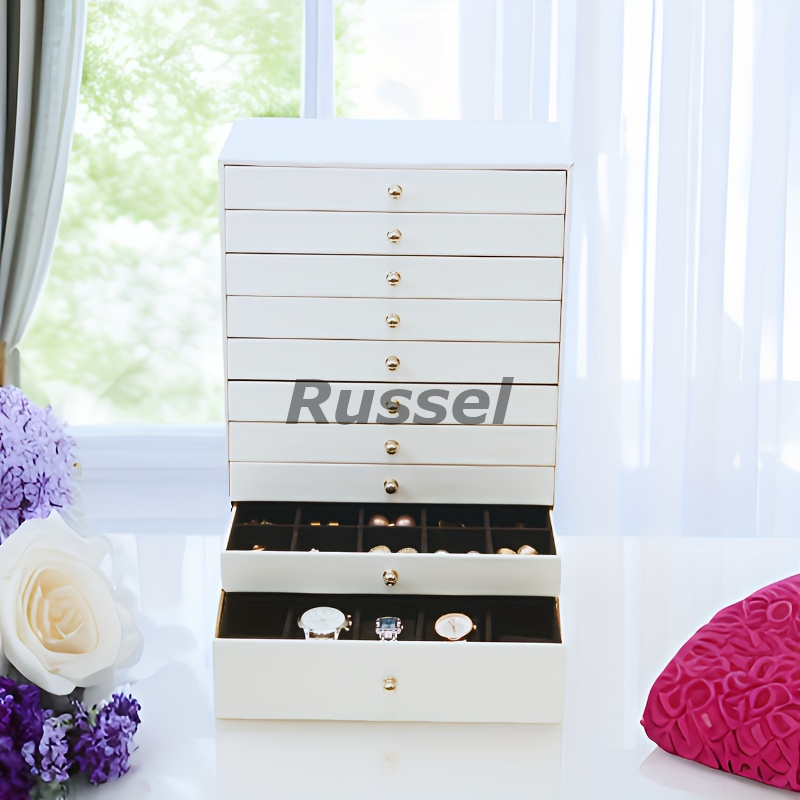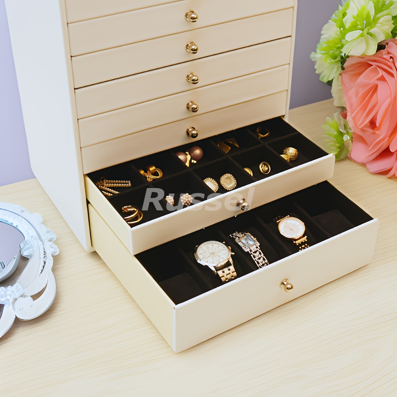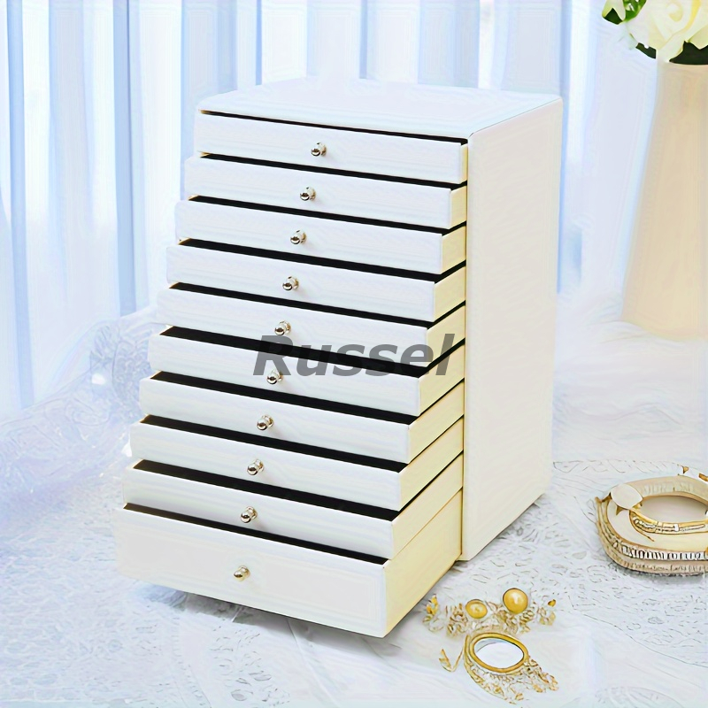 ジュエリー ボックス レザー調 10段 取っ手 付き おしゃれ かわいい アクセサリー ケース 宝石箱 贈り物 プレゼント ホワイト 4-7