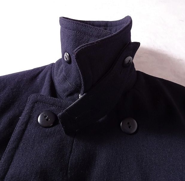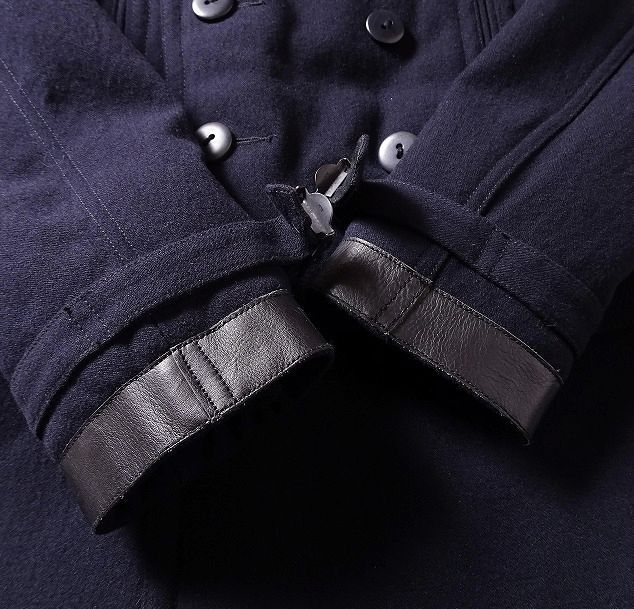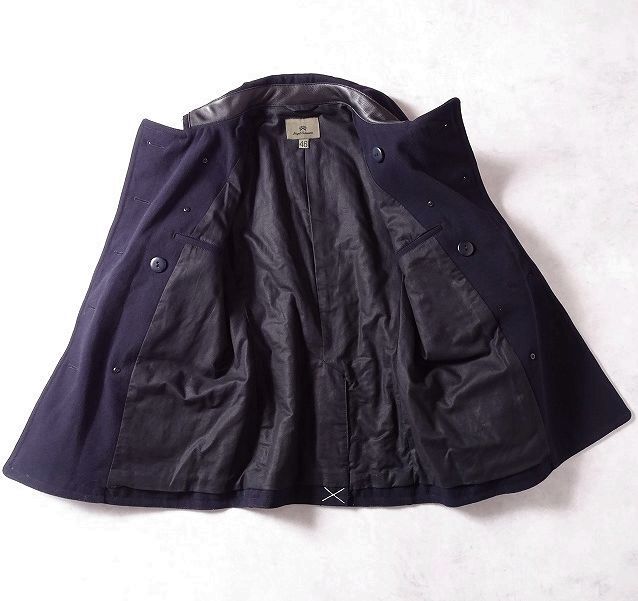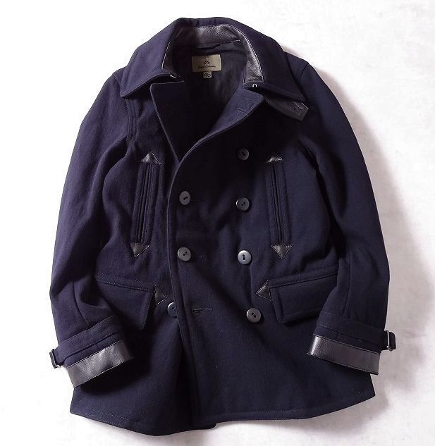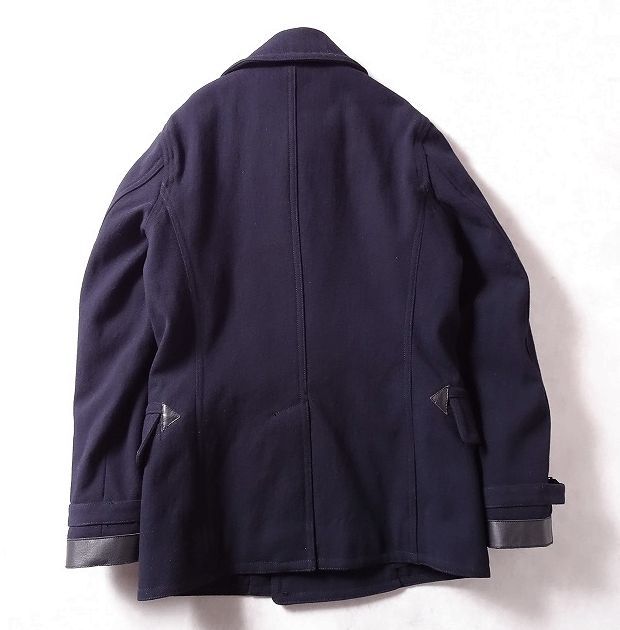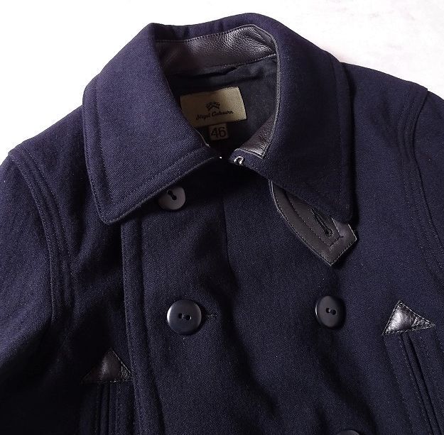 Nigel Cabourn ナイジェルケーボン ウール ミリタリー ピーコート ストラップ Pコート レザー切替 牛革 メンズ (46) 濃紺 ●r-484