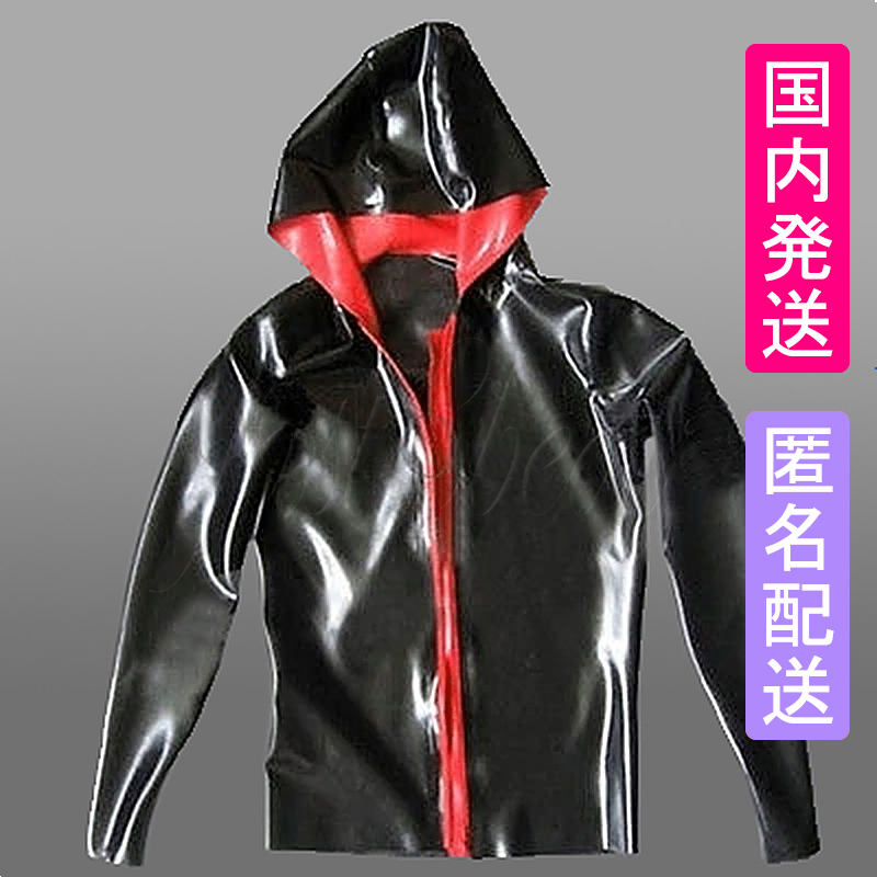 2XLサイズ★レッド×ブラック★ラテックスフルジップパーカー