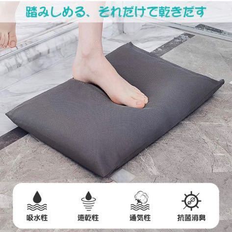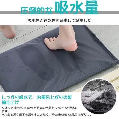 「驚異の吸水力」「脱臭湿度調整効果」「カビやダニの発生を抑制」「洗濯不要でいつでも快適」と多機能が特徴のバスマットです。