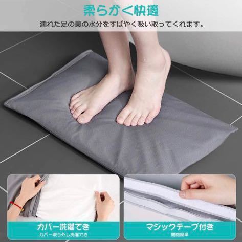 珪藻土 バスマット お風呂マット 足拭きマット 速乾 吸水性抜群 珪藻土マット 柔らか 消臭 抗菌 防カビ 滑り止め 浴室 洗面所 脱衣所 バスマット 53*35cm カバー2枚付き
