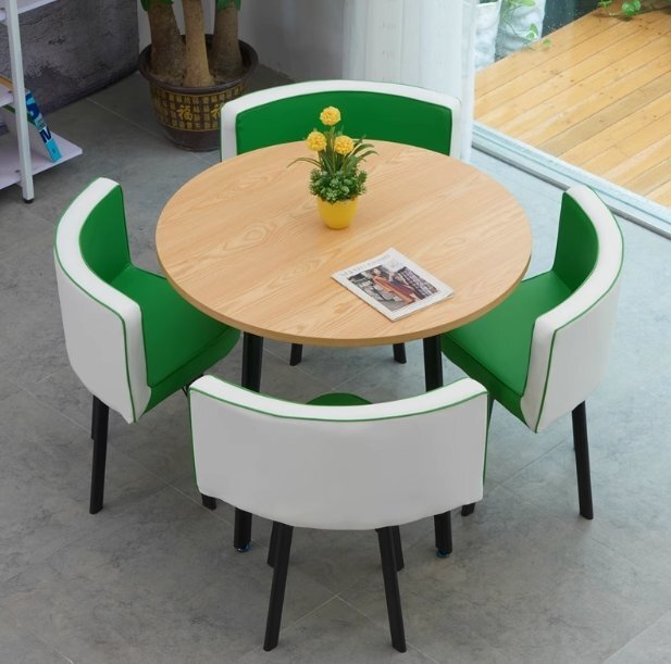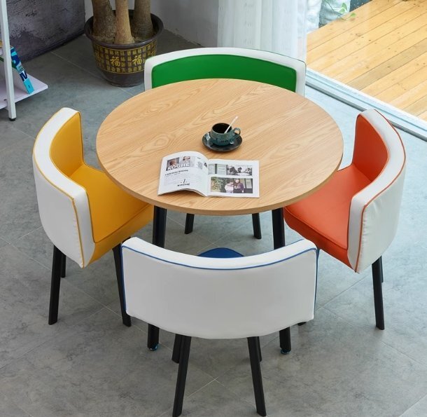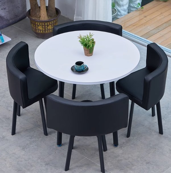★多機能 丸テーブルと椅子 5枚セット テーブルと椅子の組み合わせ 商談 役員応接 会議テーブル