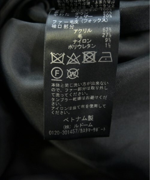 メイン素材:(表地、裏地)ポリエステル100%、(中綿)ダウン80%、フェザー20%、(袖口)アクリル63%、毛27%、ナイロン9%、ポリウレタン1%