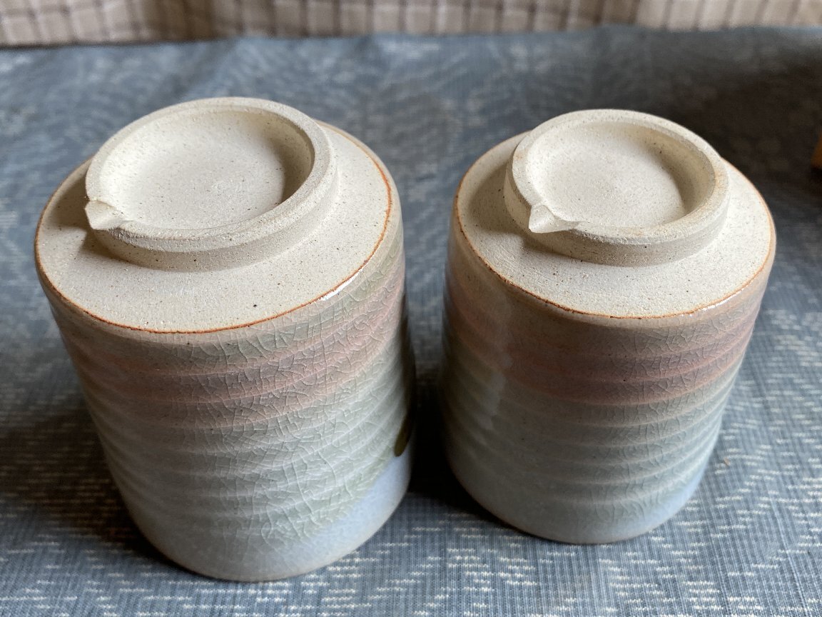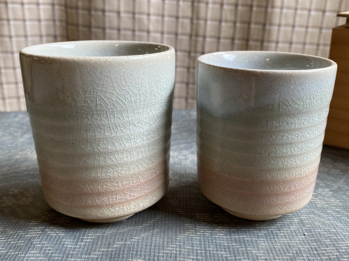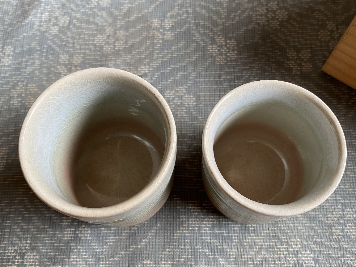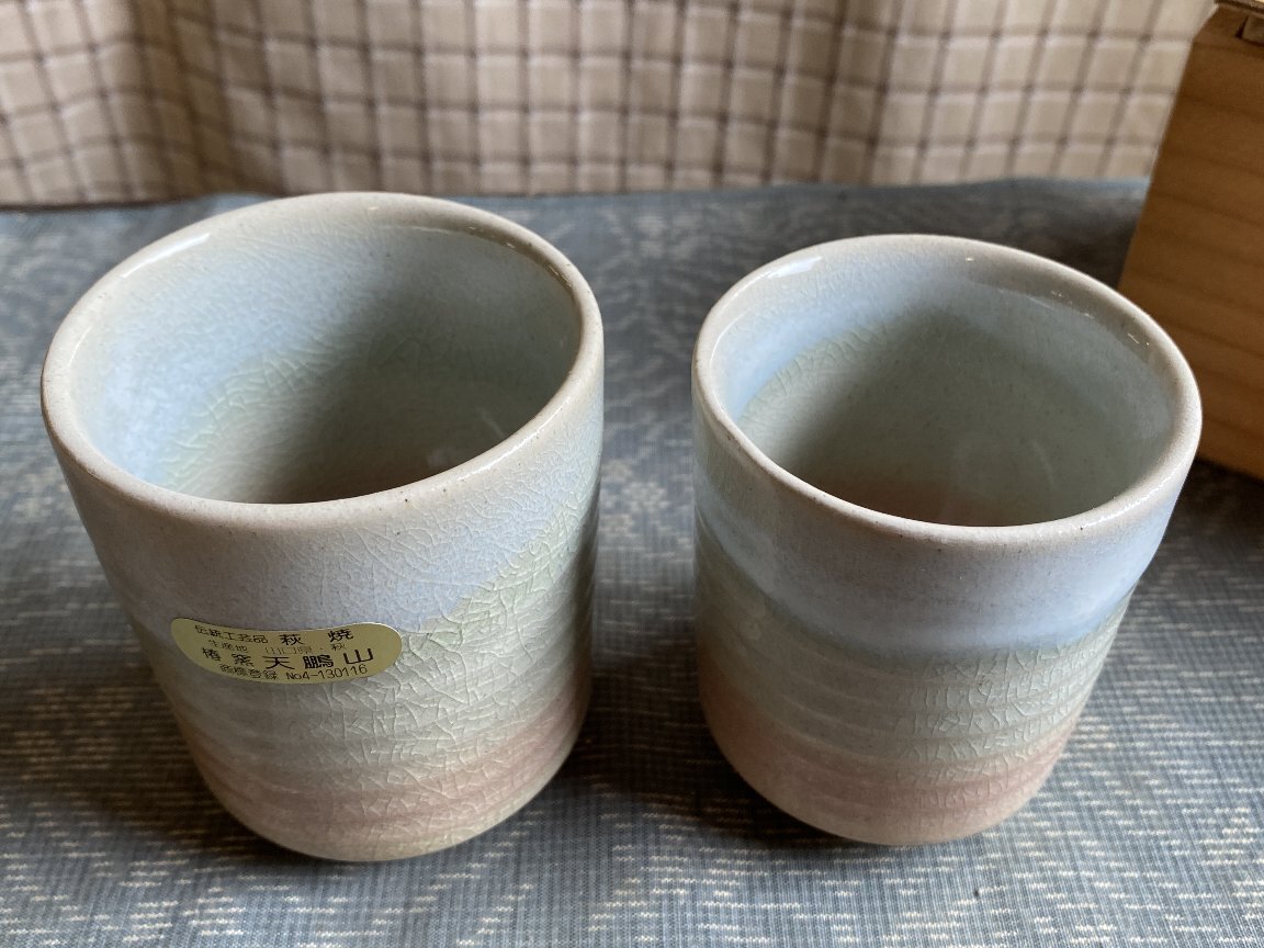 萩焼 椿窯 天鵬山 廣瀬淡雅 夫婦湯呑 共箱▼煎茶道具伝統工芸