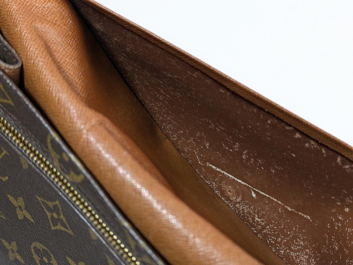 表面生地きれいめ。内部擦れ傷、フラップ内側折り目に小ヒビ、フラップ裏ポケット