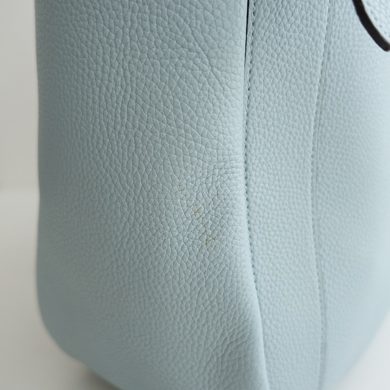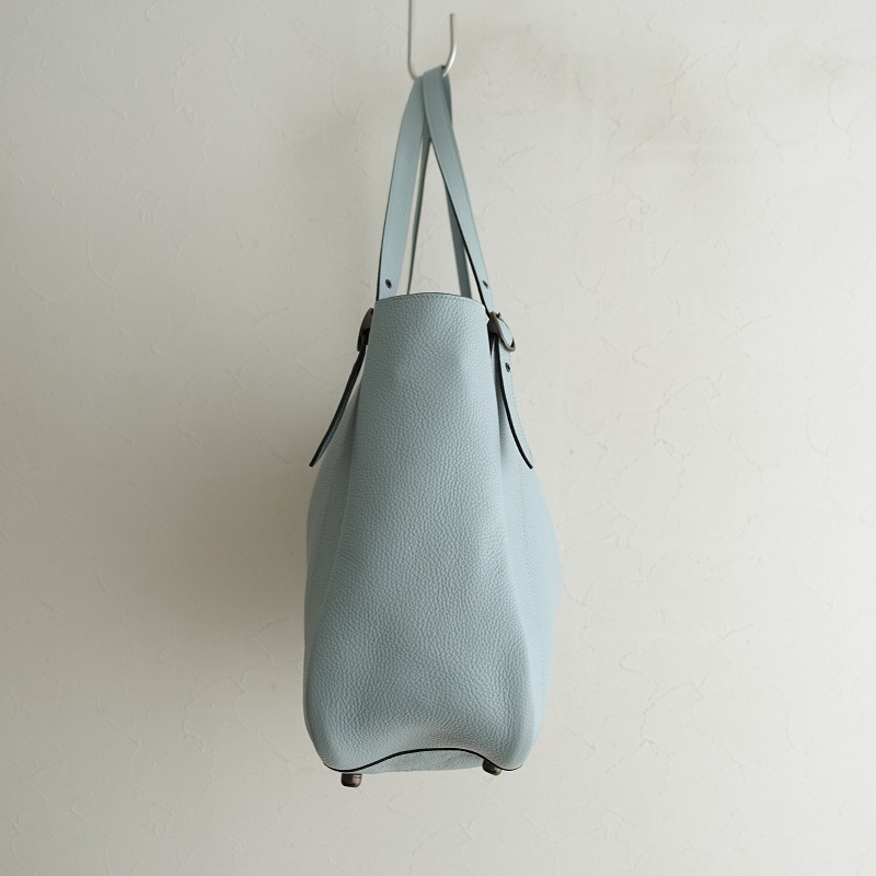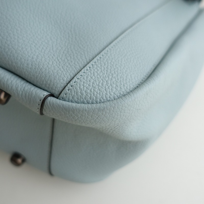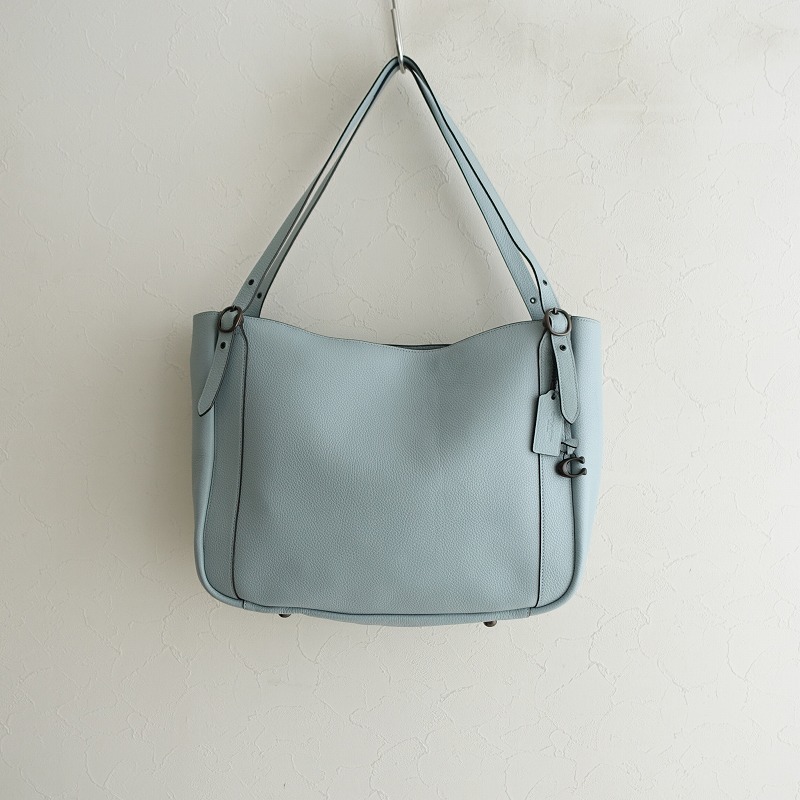 | COACHのAlana トートバッグです。カラーはライトブルーグレーで素材はレザー、開口部はジッパーです。内側にオープンポケットとジッパーポケットが1つずつあり、持ち手は多少調節可能で、底鋲付きです。定価(メーカー希望小売価格)81,400円の商品です。 |