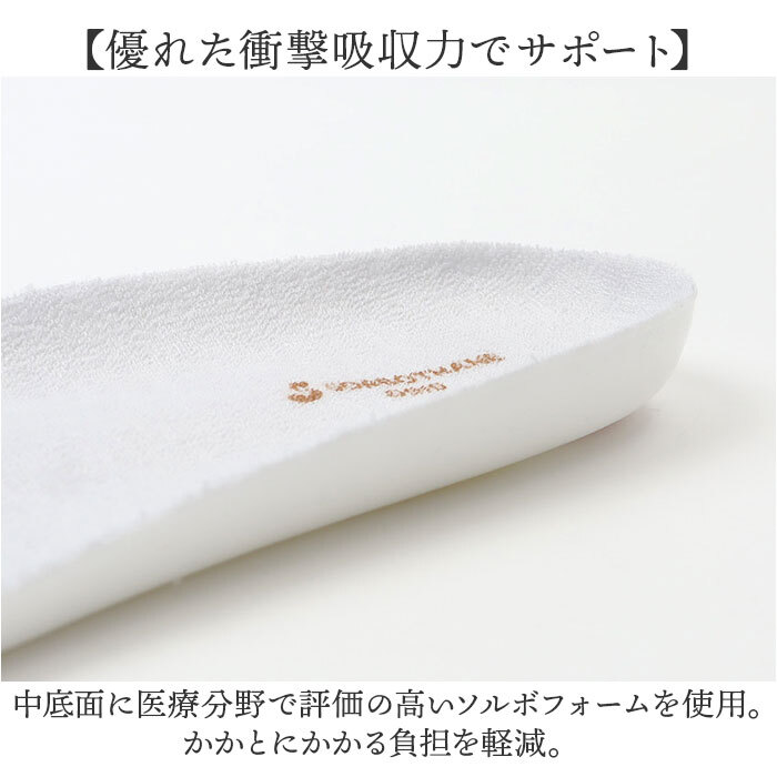 素材 | [ルームシューズ本体] 甲部:綿、ポリエステル 中底:EVA 底:PVC [インソール] 本体:ポリウレタン パッド:ポリウレタン樹脂(ソルボセイン) 生地:ポリエステル |