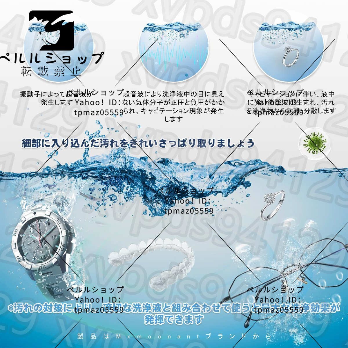 【徹底的に洗浄】超音波洗浄機は40kHzの周波数、360Wのパワー、二枚の高質振動子を採用し、洗浄効果が上昇します。目に見えないところの隅々まで洗えます。