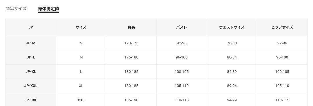サイズはJP-XXL (XL)