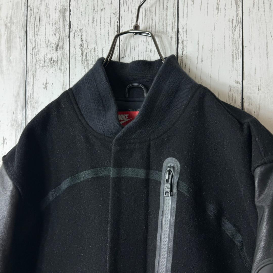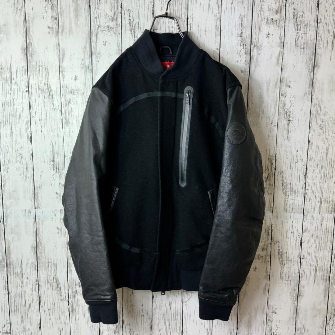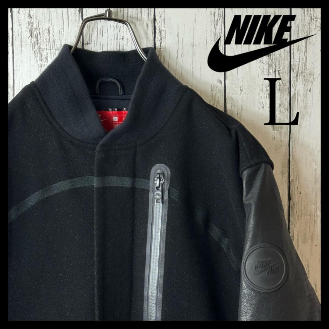 【希少】ナイキ デストロイヤージャケット スタジャン L 黒 袖レザー ウール ブラック