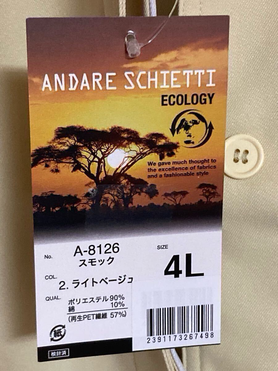 コーコス信岡 作業着【レディース4L】女性用 スモック ジャケット 長袖 仕事着 ワーク服 ライトベージュ イエロー 黄色 新品タグ付 ANDARE SCHIETTI A-8126