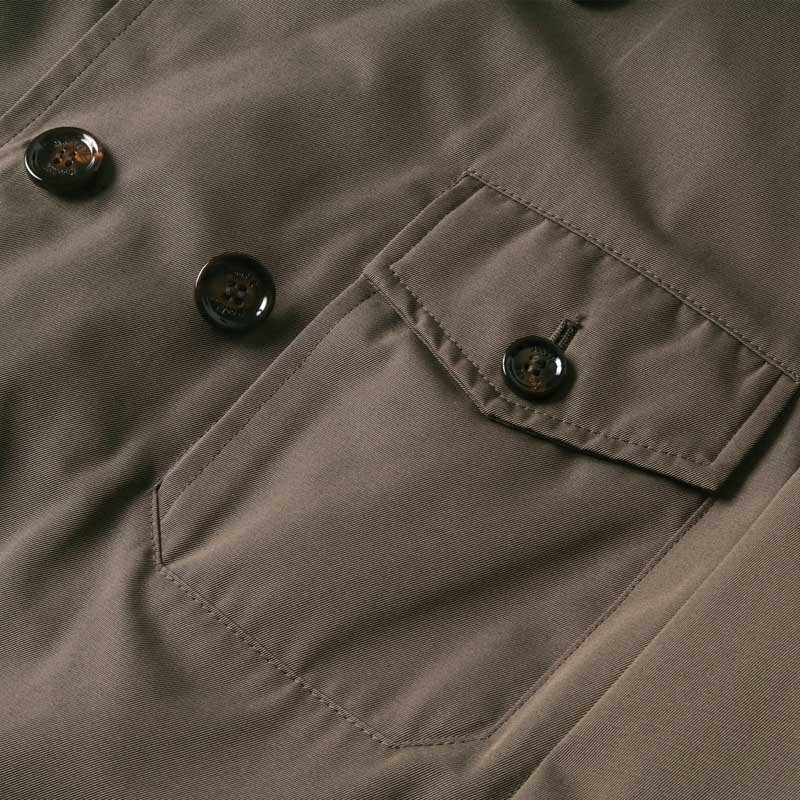 ・フロントの合わせが浅いセミダブルフロント、両肩エポーレット付き、身頃には3つのフラップ付きパッチポケット。