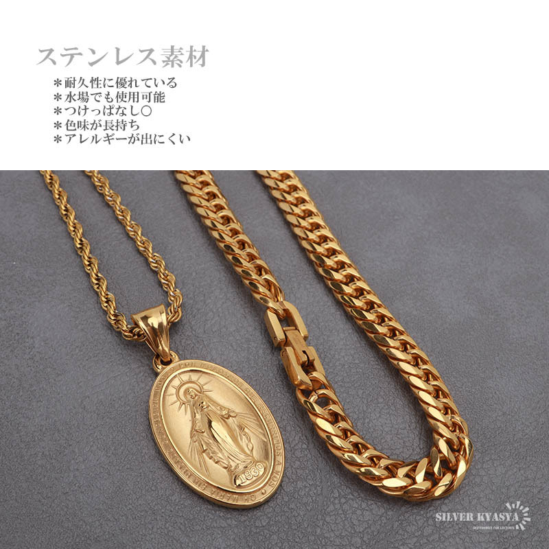 ステンレス マリアコインネックレス ゴールド 18KGP ダブル喜平チェーン 7mm ロープチェーン 金属アレルギー対応