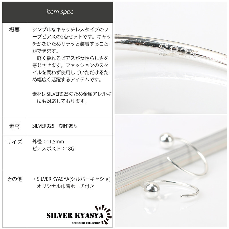 シルバー925 ピアス オーブ 球体 シルバーピアス フープピアス サークル プレーン 小ぶり 金属アレルギー 両耳用 2点