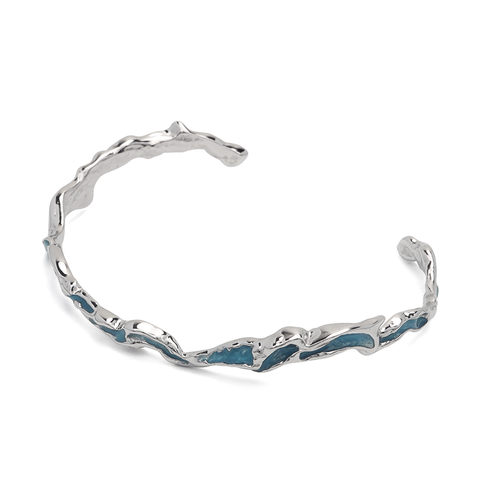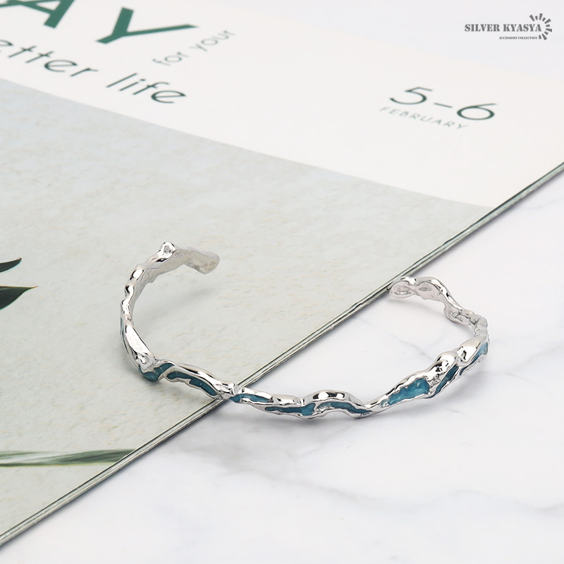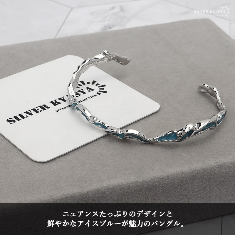 ニュアンスたっぷりのデザインと鮮やかなアイスブルーが魅力のバングル。