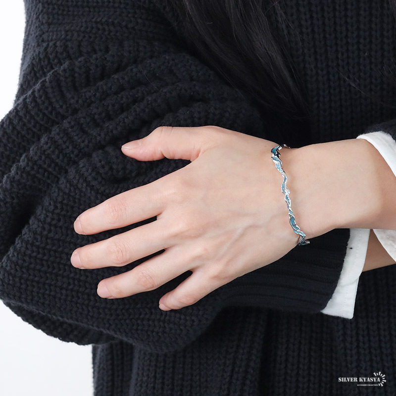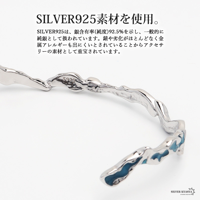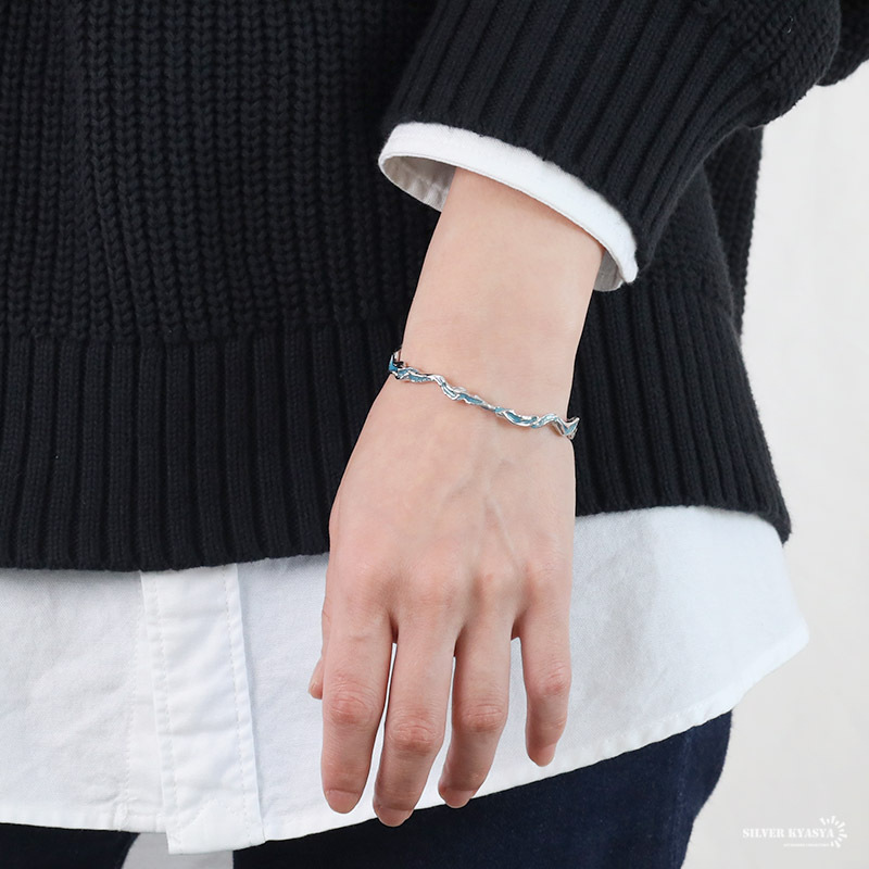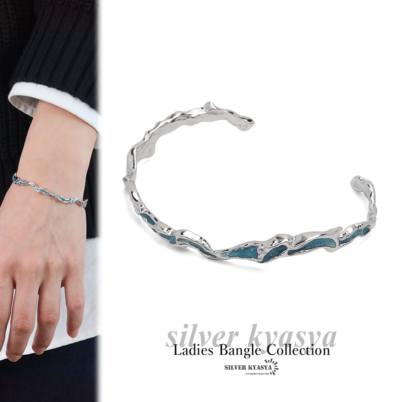 バングル ブレスレット シルバー925 S925 レディース ひねり 華奢 細身 シルバー ブルー グリーン 金属アレルギー対応