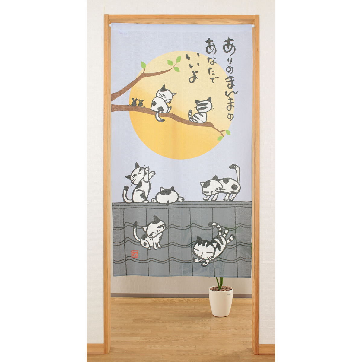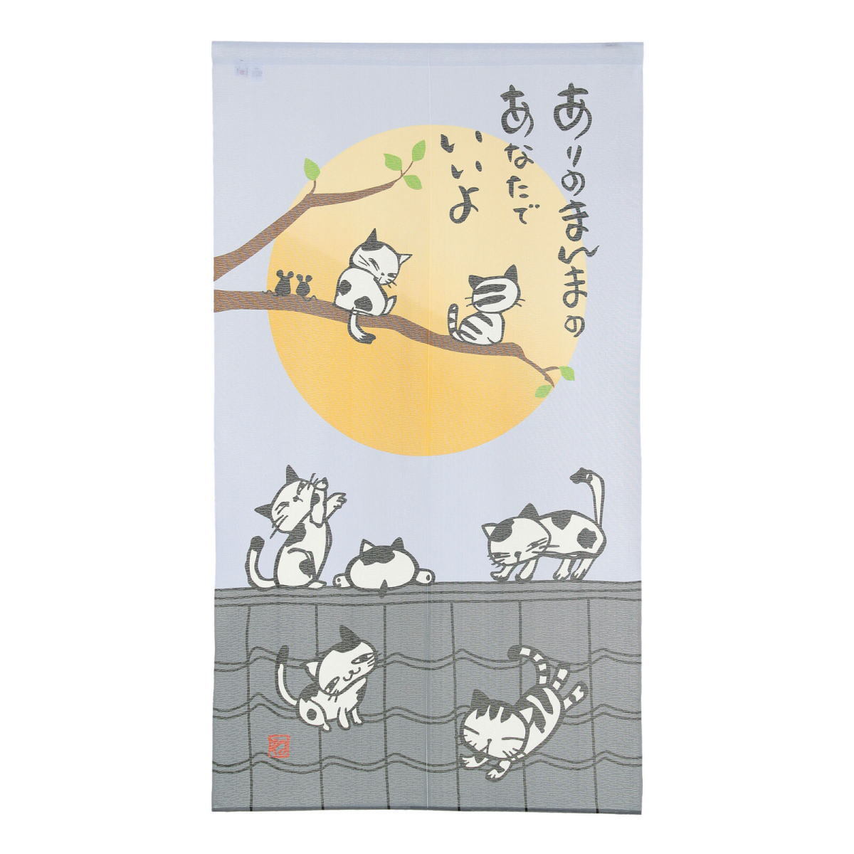 和風 防炎のれん82×150cm 防炎ネコ 猫 ねこ 満月 和柄 暖簾 ノレン グレー naru-9110
