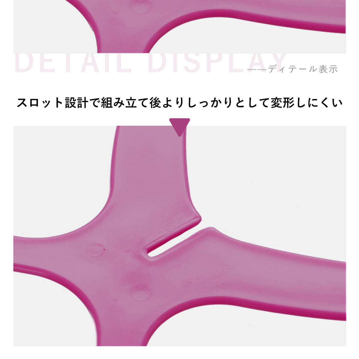 取り付け方法 | 1.最初に2つのR型サポート片を取り、同じ位置のクロスロックを合わせて、十字になるようにします。 2. 2つのR型サポート片の上端と下端のロックをきつく押し込みます。 3.サポートの上部に円環状のサポート片を差し込み、スロットにロックを差し込んで組み立て完了です。 |