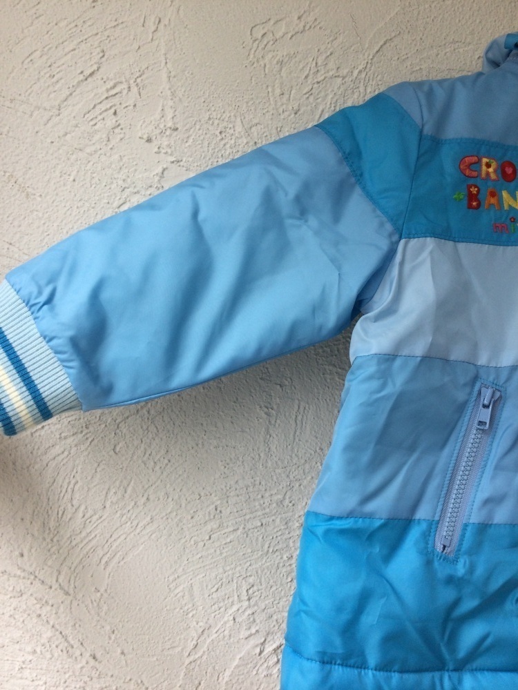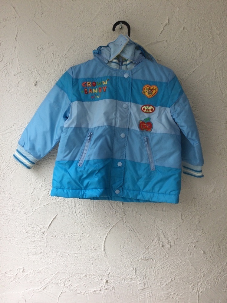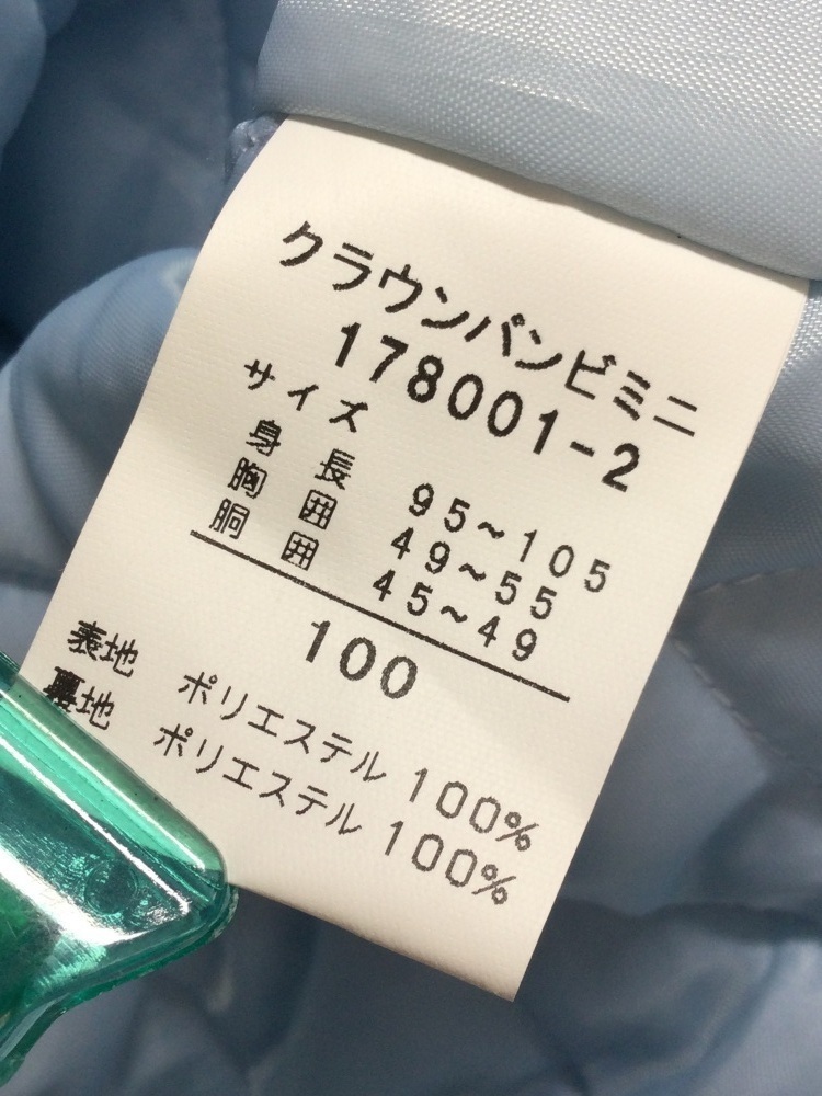 管理番号:40^128230 クラウンバンビ キッズ 水色取り外し可能フード付きコート 表示サイズ:100 実寸(参考)