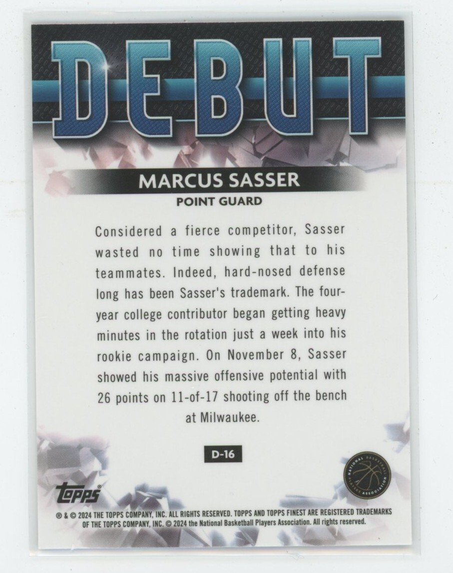 【MARCUS SASSER(Detroit Pistons)】2023-24 TOPPS Finest Debut Checkerboard Refractors #D16