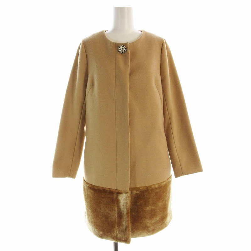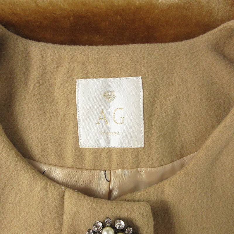 エージーバイアクアガール AG by aquagirl ノーカラーコート ロング ビジュー 切替 S ベージュ /EE ■OF レディース