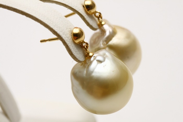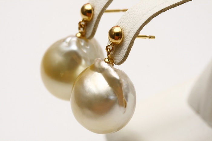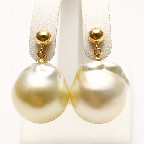 超大珠14mmサイズの南洋パールピアスです。 この上ないボリューム感をお楽しみ頂ける一品です。 優しいナチュラルゴールドのお色目が出ています。 キズは少し見られます。 大珠ピアスを耳元に飾るだけで全体が引き締まります。 デイリースタイルのワンポイントに加えるととっても素敵です。 ※イヤリングへのご変更可能です。 | |