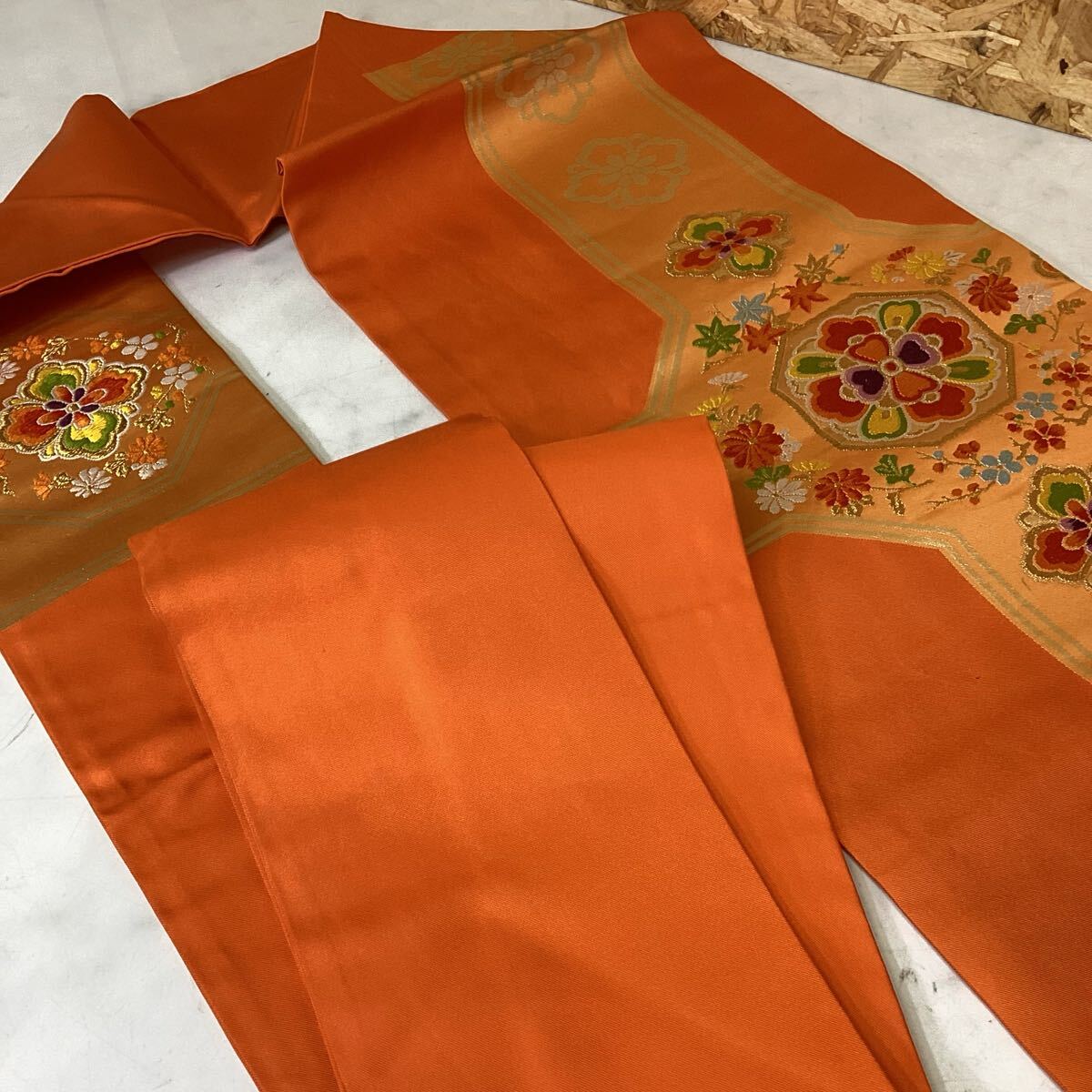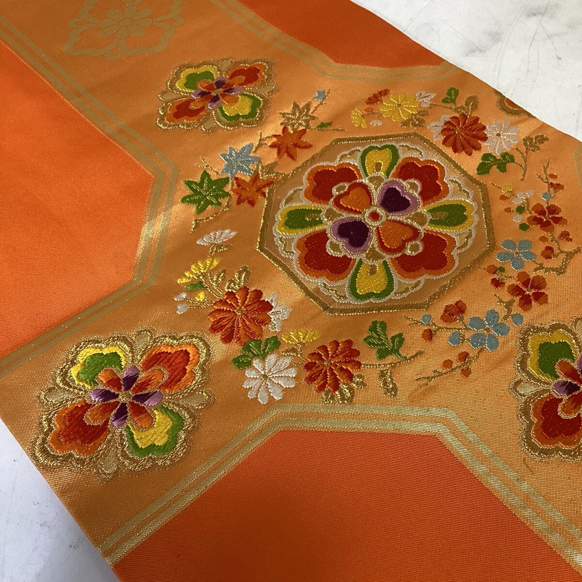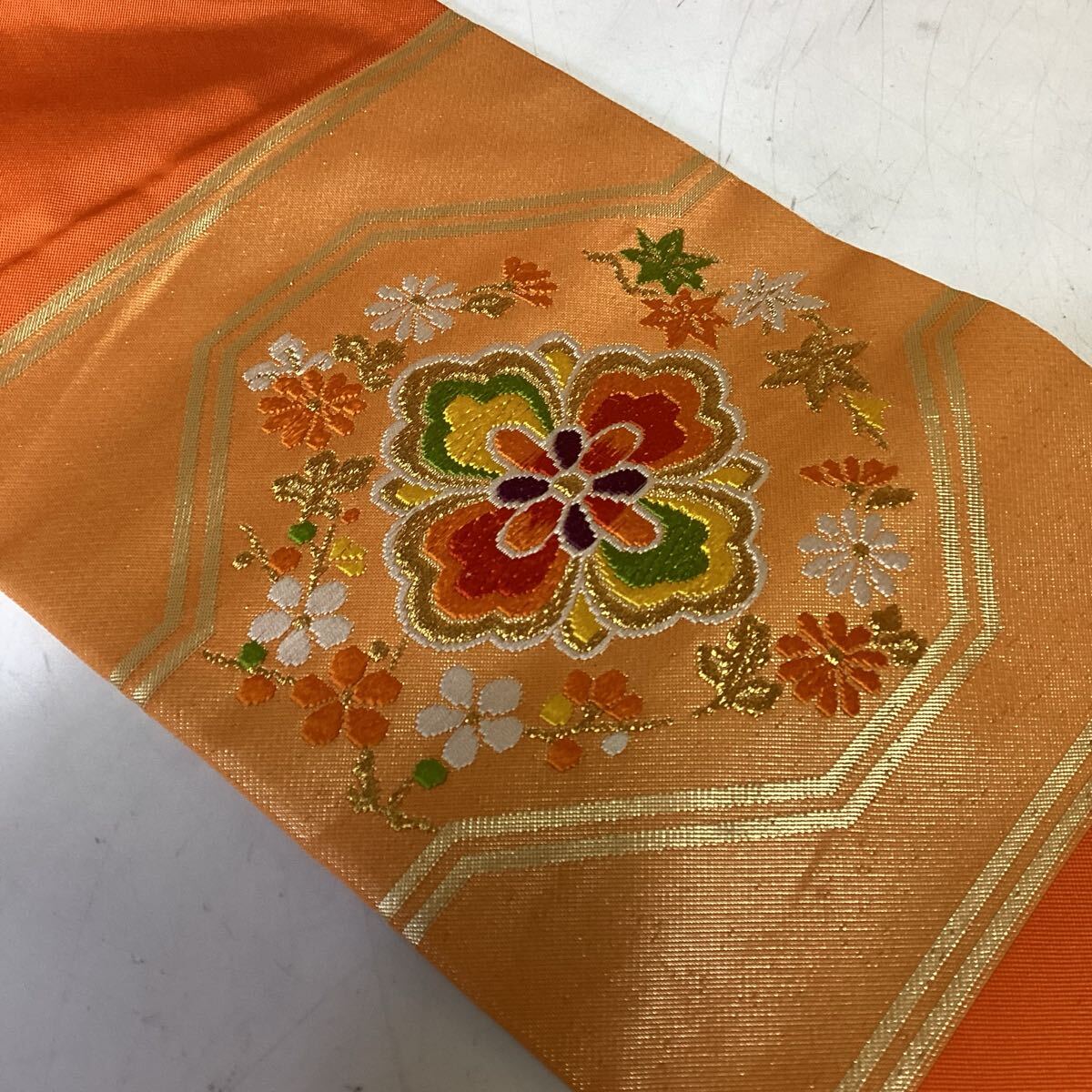 和装 着物 名古屋帯 オレンジ 花柄 上品 ゴージャス し-85