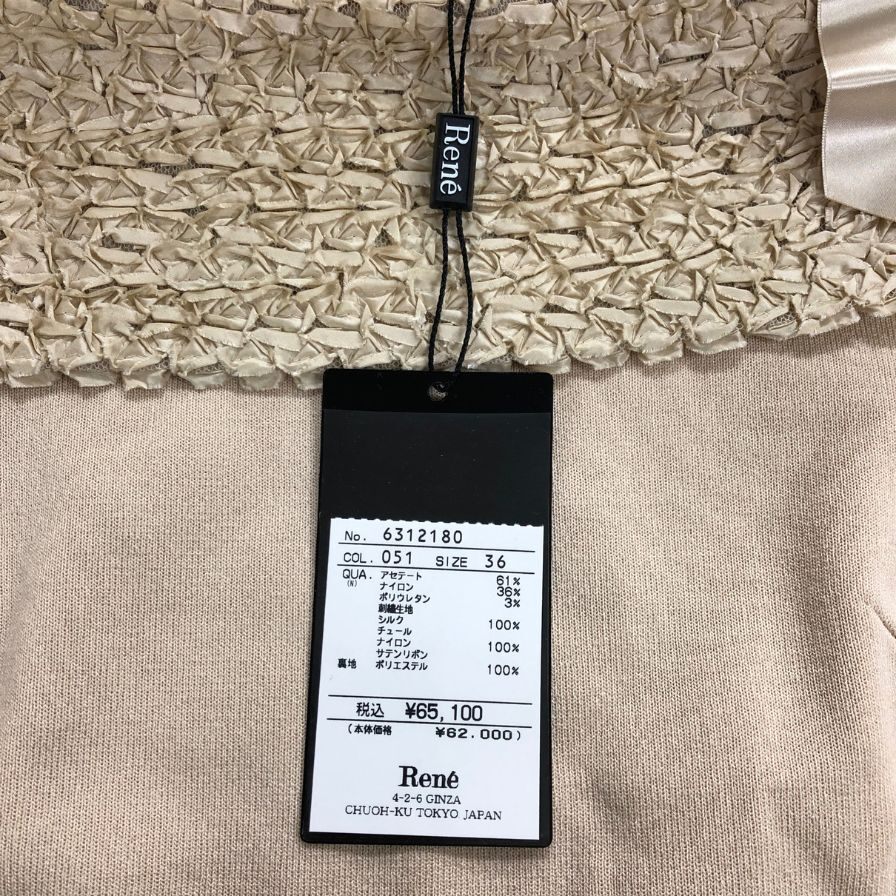 新品同様◆セーター ルネ ニット ロングスリーブ リボン付き ベージュ レディース サイズ36 Rene 【AFB12】