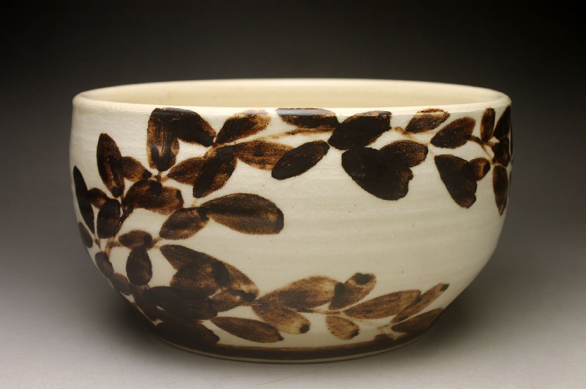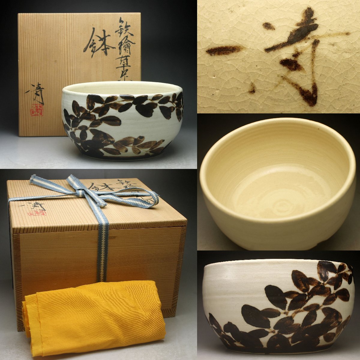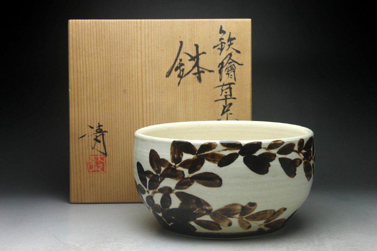 【余韻】 清水焼 京焼 鈴木清 鉄絵草花図 鉢 共箱★人間国宝 富本憲吉 師事★鈴木爽司 の父 <同梱可>