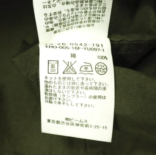 BEAMS BOY ビームスボーイ ワッシャーオーバーワンピース 13-26-0542-791 Free OLIVE ノーカラー ミリタリー シャツ トップス g20920
