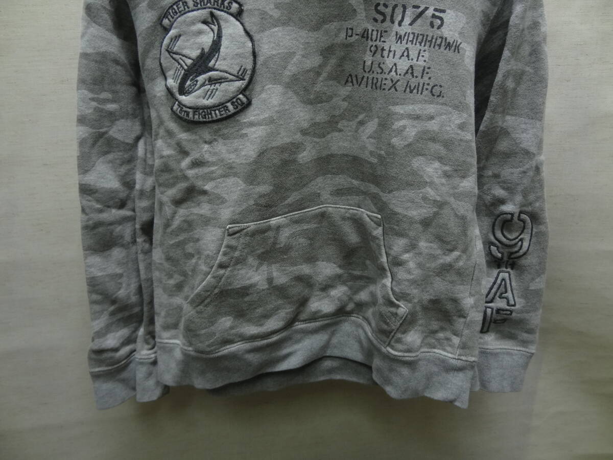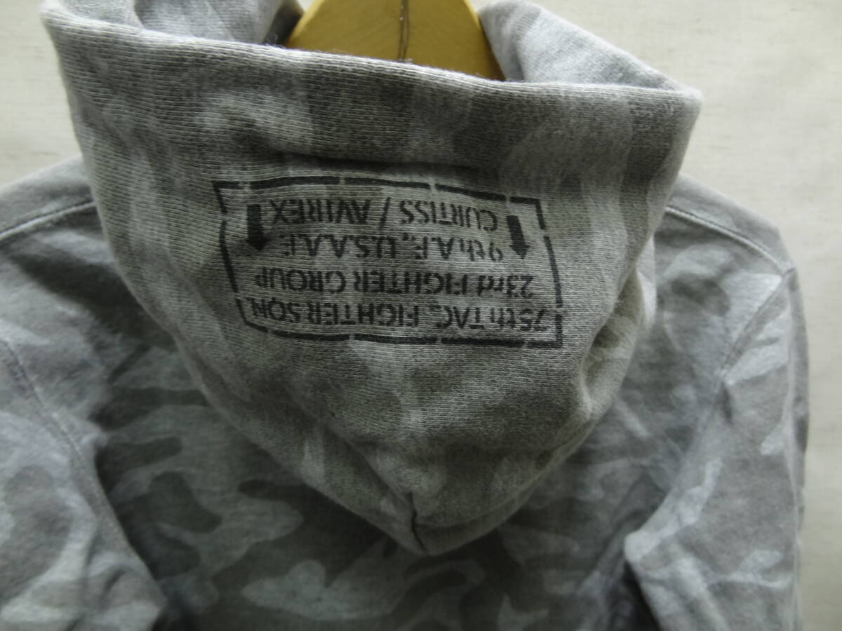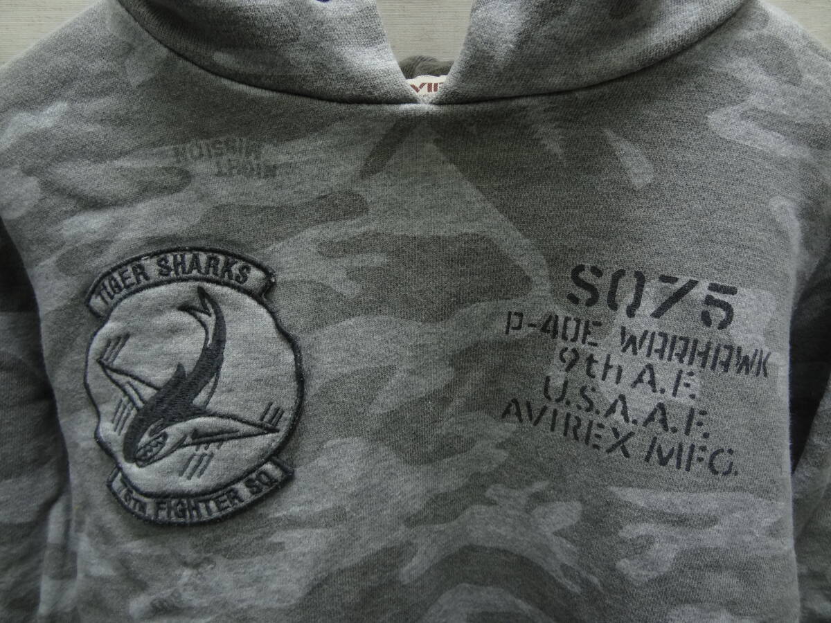 全国送料無料 アビレックス AVIREX 上野商会製 子供服キッズ男の子 ワッペン&刺繍 迷彩総柄プリント入り スウェットプルパーカー 140