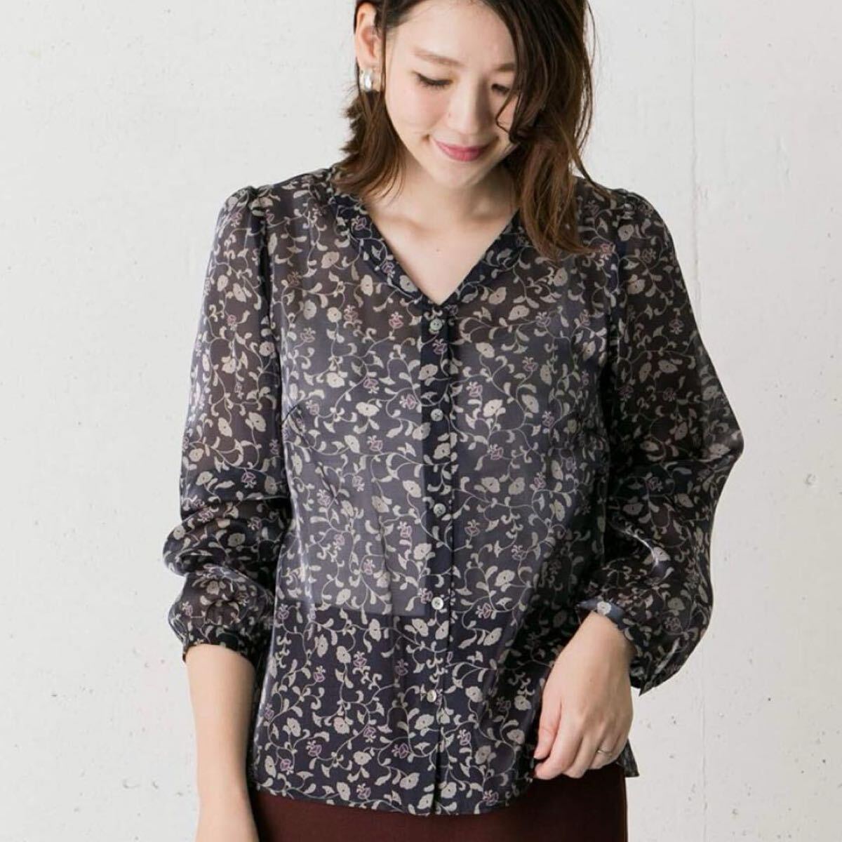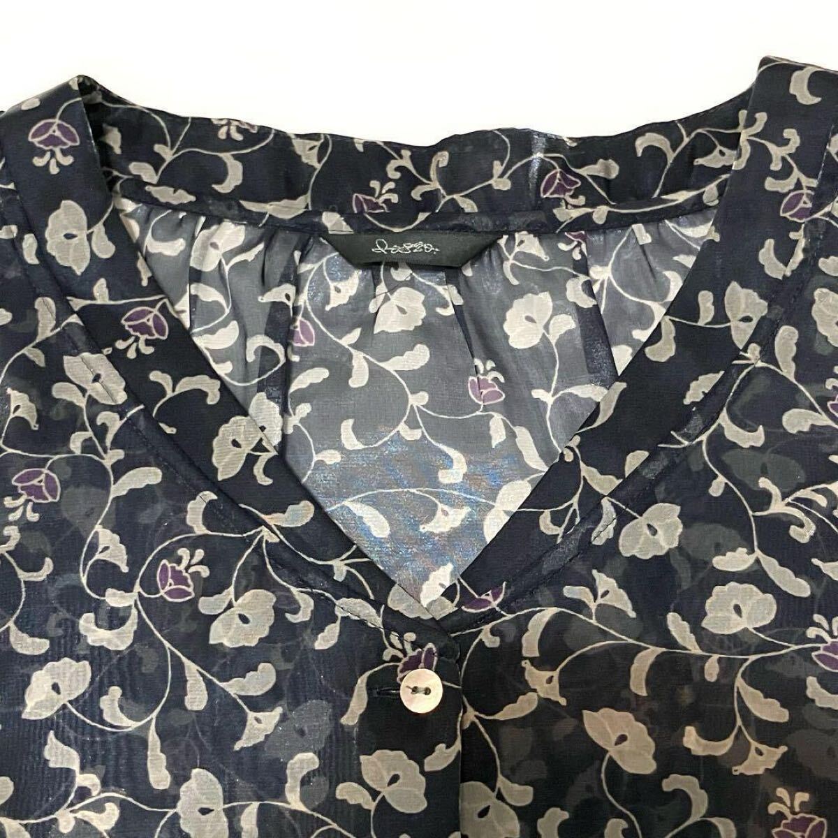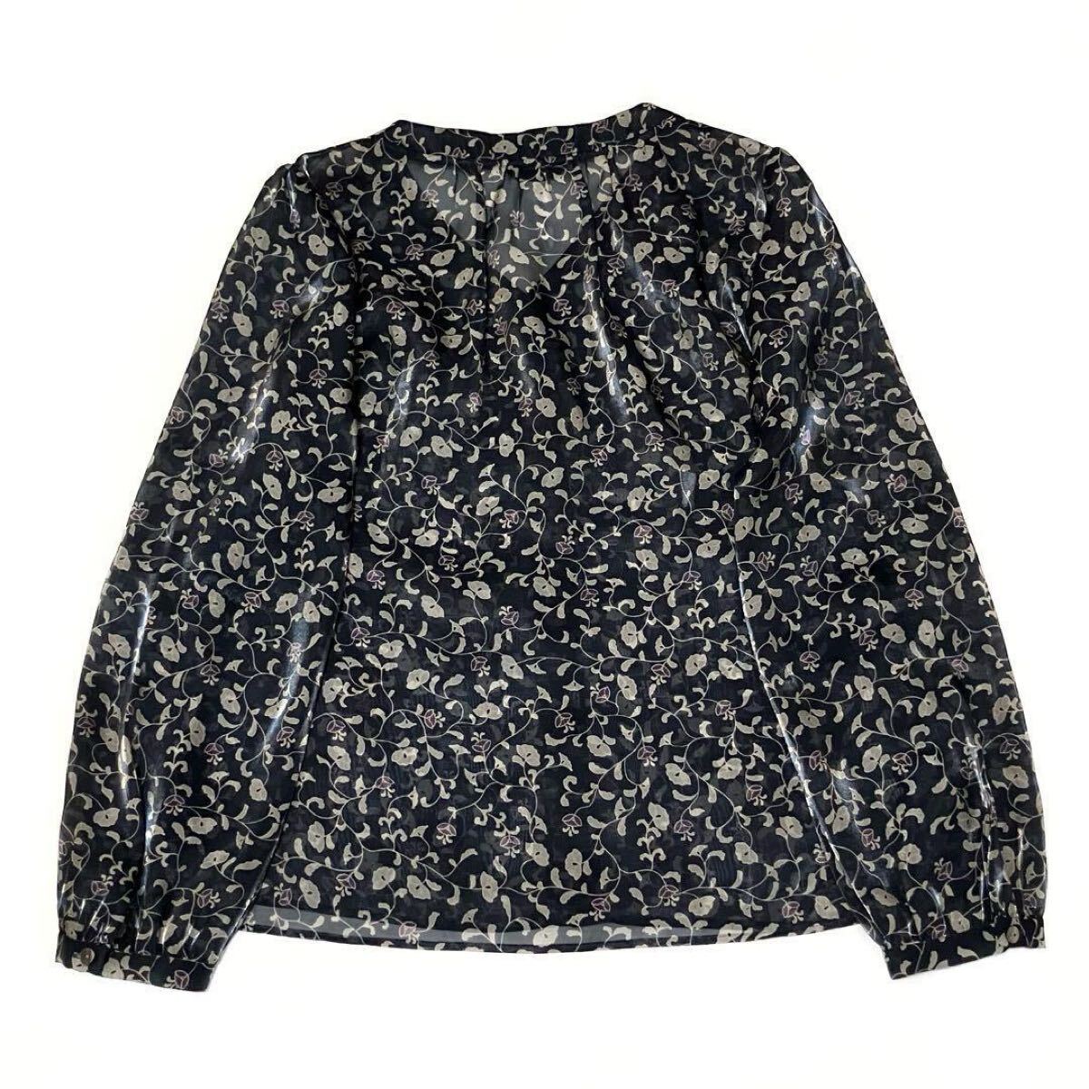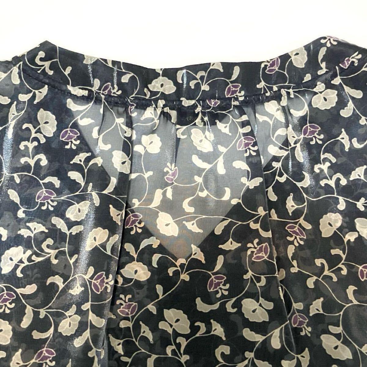 URBAN RESEARCH ROSSO★割線ビンテージフラワープリントブラウス 長袖 ネイビー 紺