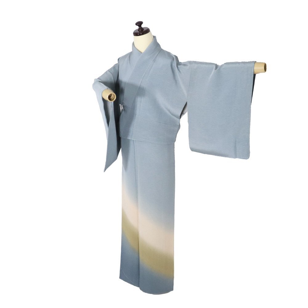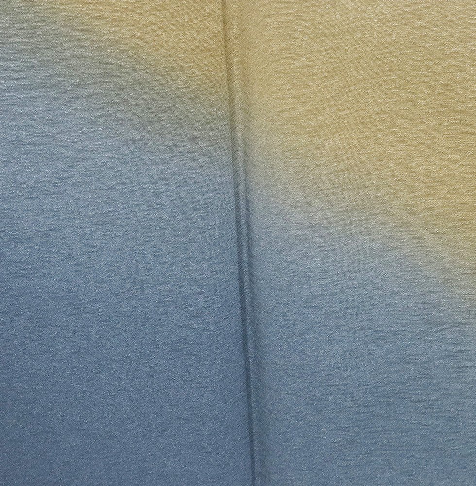 友禅訪問着 袷 丹後縮緬地 東雲地 薄緑(千草色)・ベージュ(蜂蜜色)抹茶色・小縞地 裾暈し (写真では上手く色が出ない場合があります。ご了承下さい) |