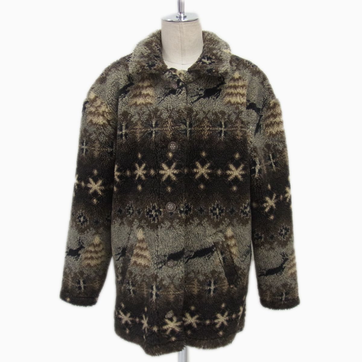 美品 80年 ビンテージ◇L.L.BEAN ノルディック テキスタイル ボア フリース ジャケット コンチョボタン エルエルビーン レディース USA製
