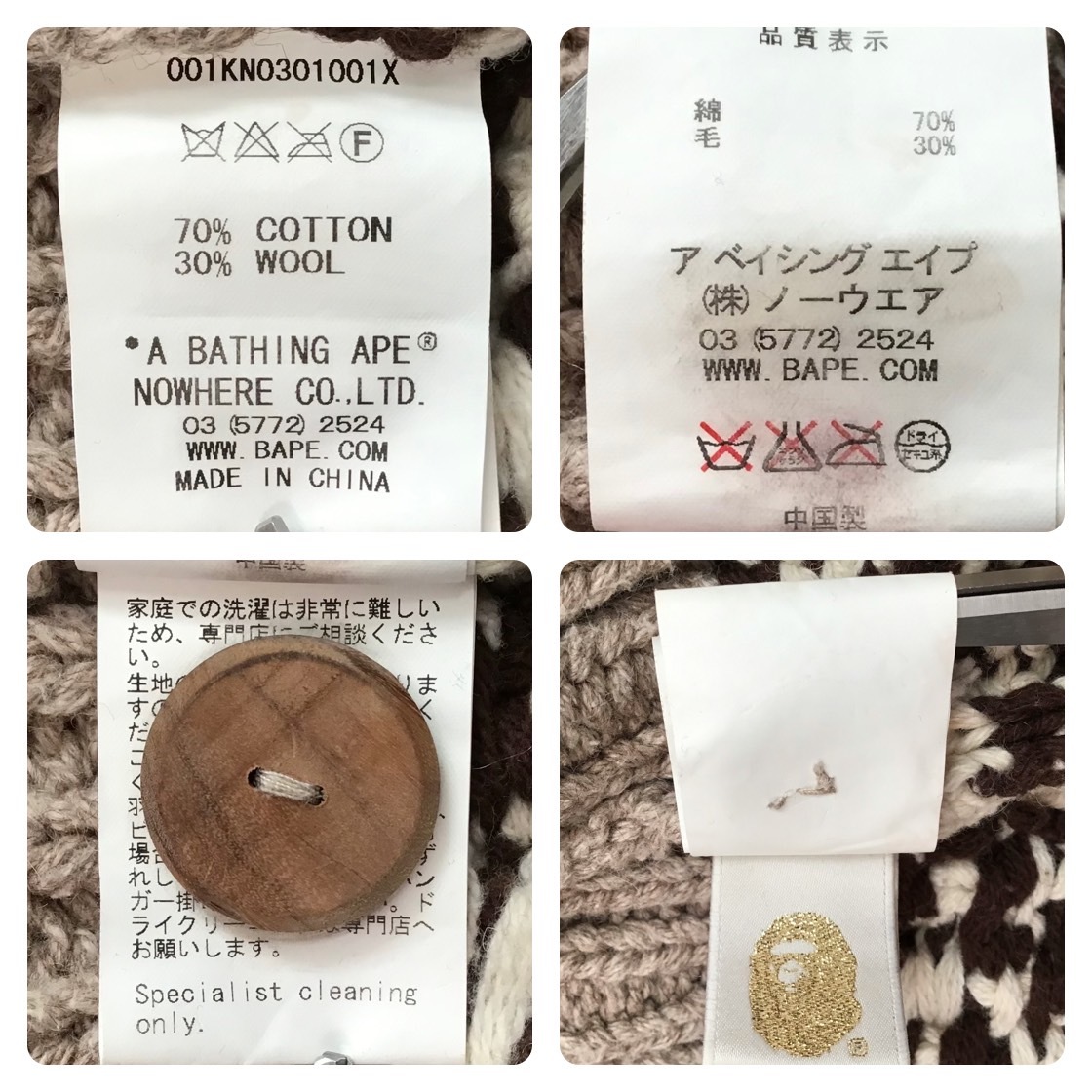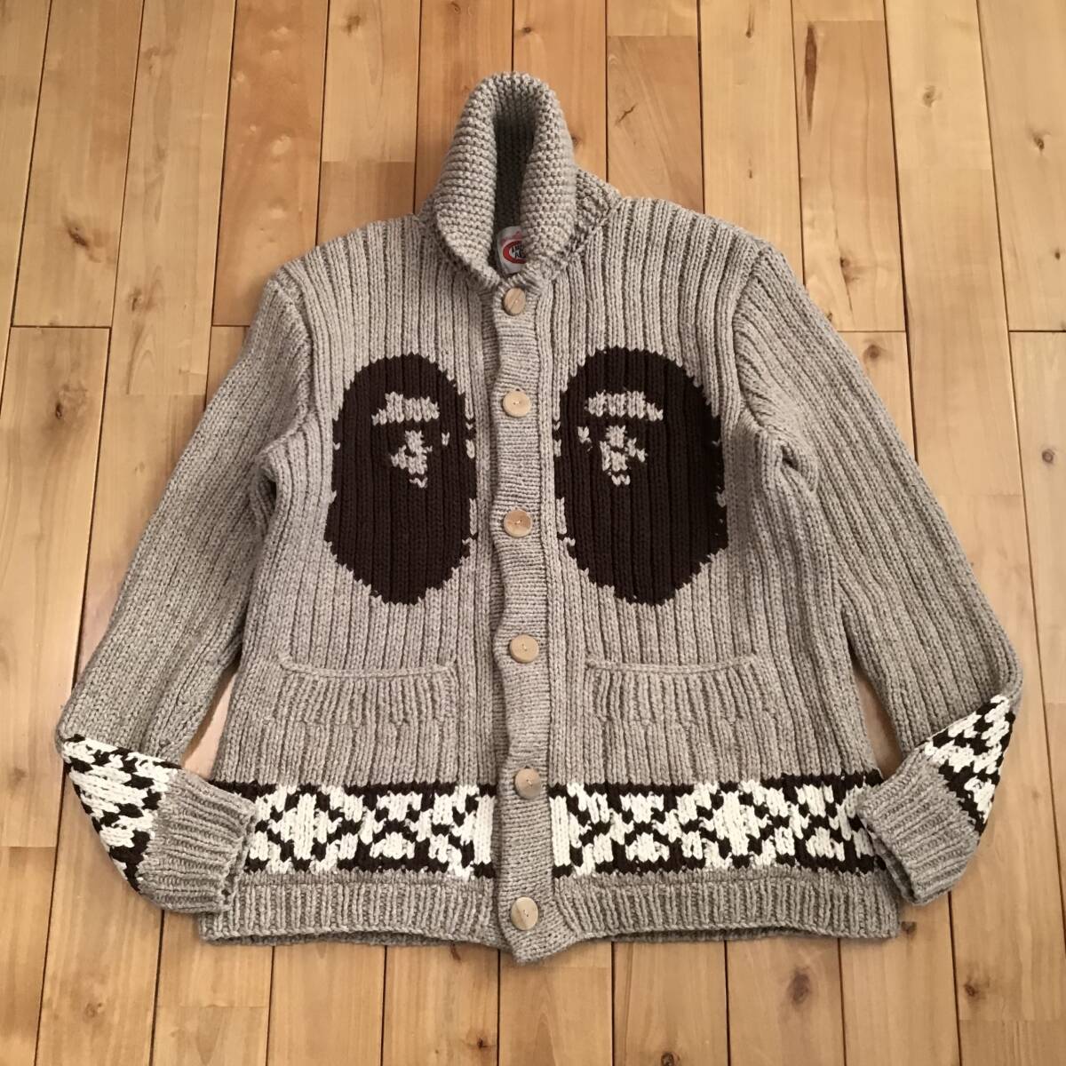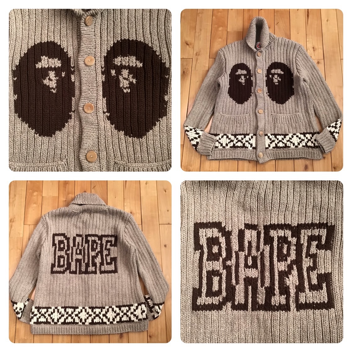 a bathing ape APE HEAD カウチンニットカーディガン ベージュ Lサイズ です★