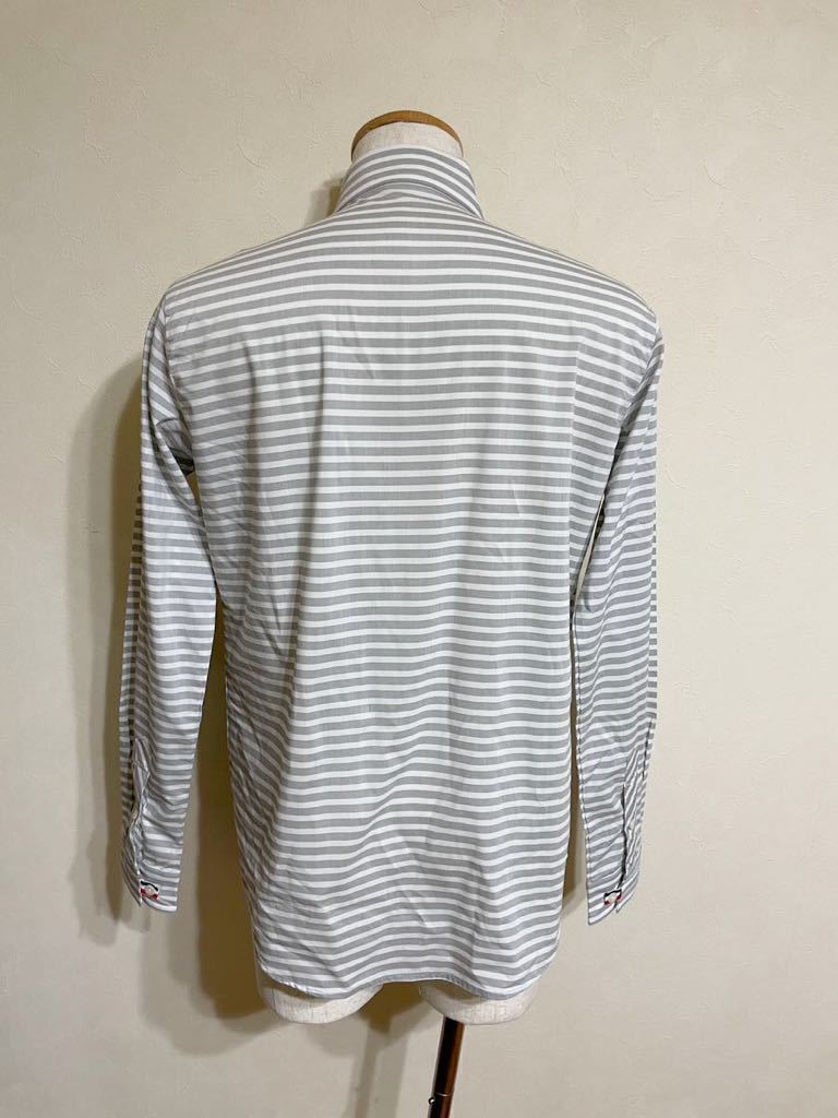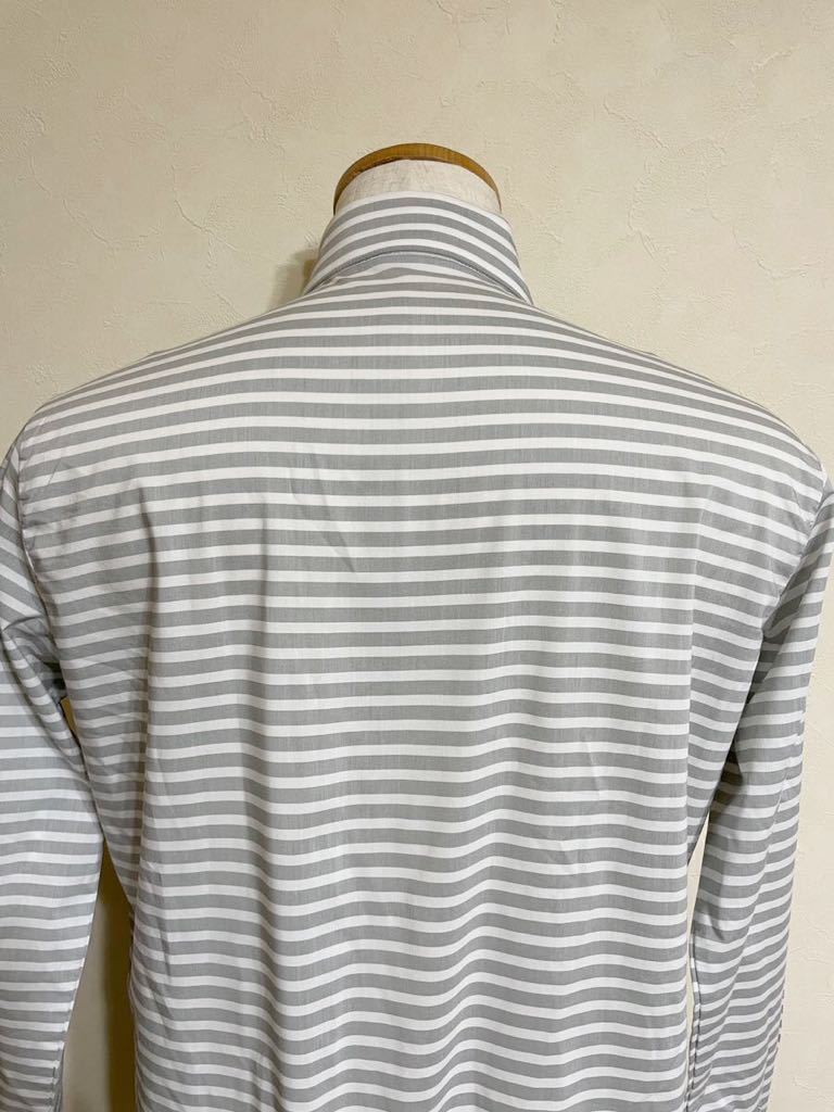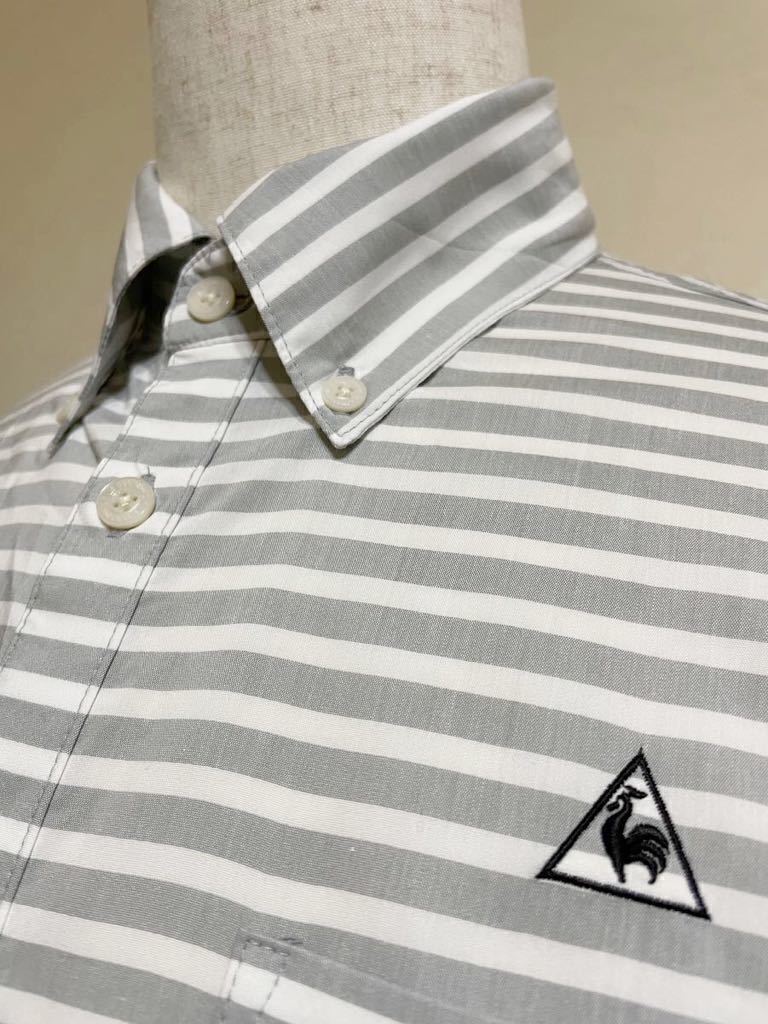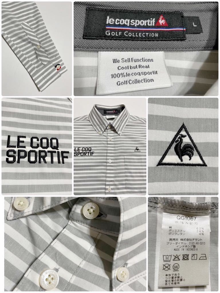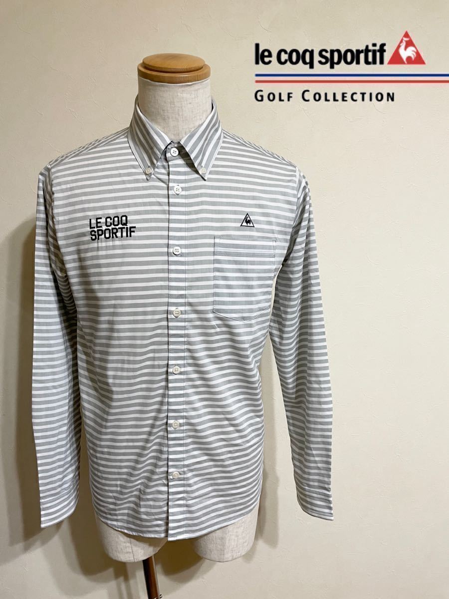 【良品】 le coq sportif golf ルコック ゴルフ ウェア ボーダー ボタンダウン シャツ トップス サイズL 長袖 グレー 白 QG1067 デサント
